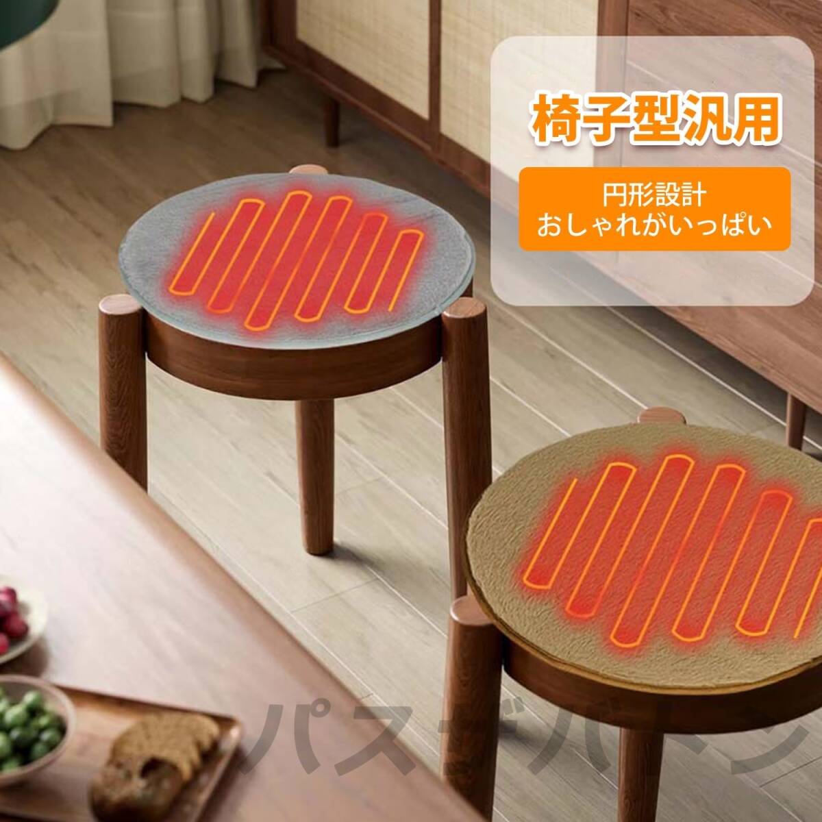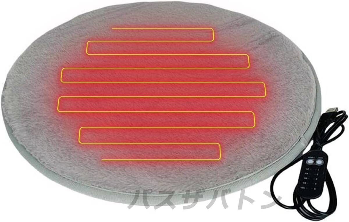 電気座布団 丸型 5段階温度/定時調整 37×37×2cm ヒーティングパッド 電熱マット USB座布団 フットウォーマー 椅子用 水洗い可 折り畳み可