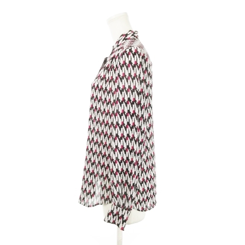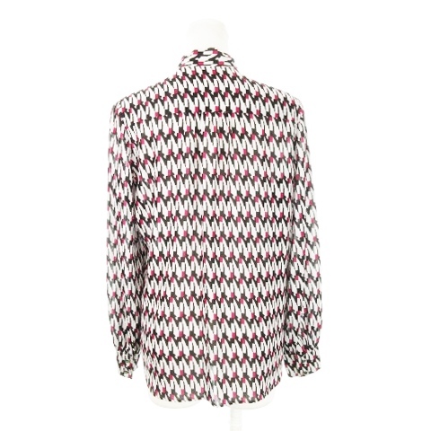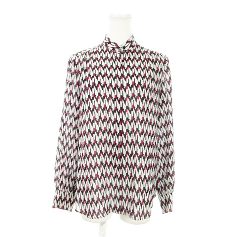 アクアスキュータム AQUASCUTUM ブラウス シャツ バンドカラー 長袖 幾何学 総柄 8 M グレー 紫 パープル /AH17 ■GY99 レディース