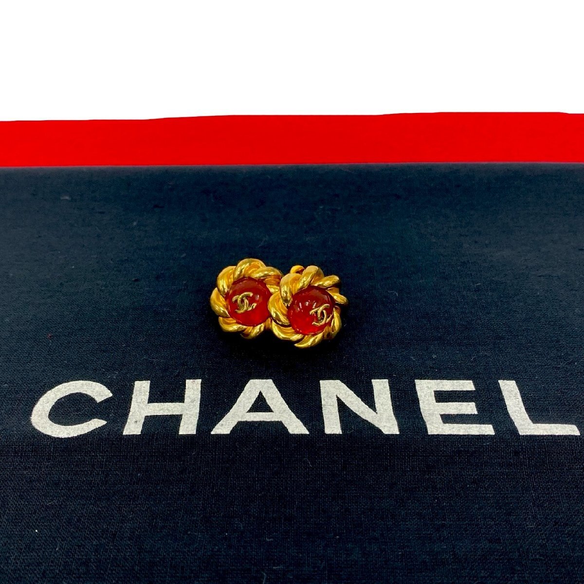 極 美品 CHANEL シャネル ヴィンテージ グリポア ココマーク カラーストーン イヤリング イヤーカフ アクセサリー ゴールド レッド 94279