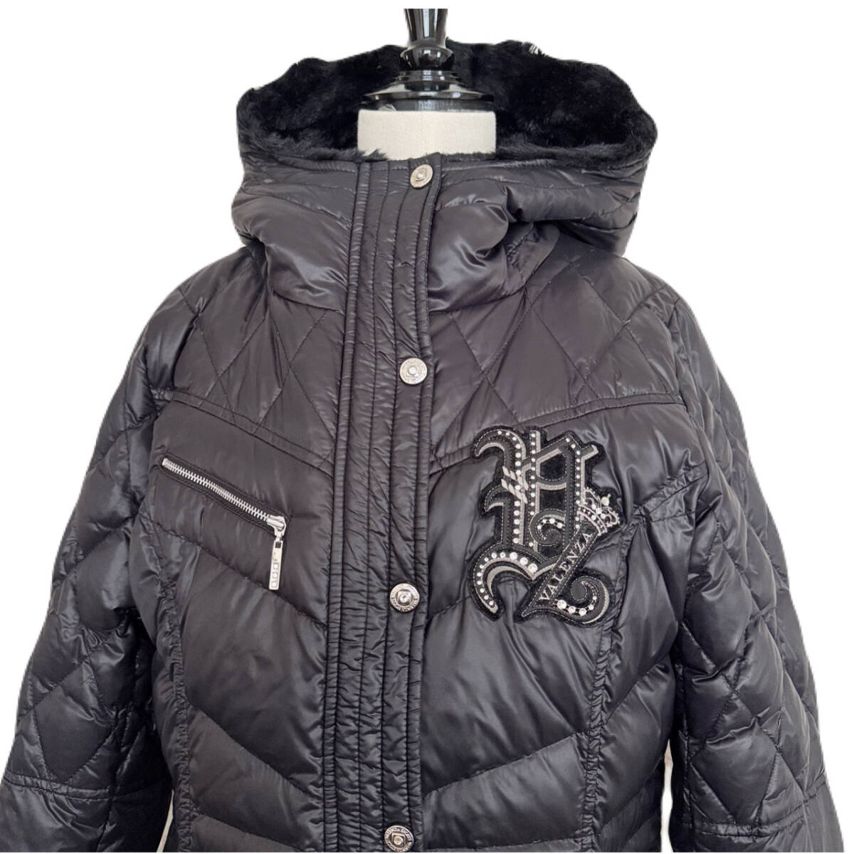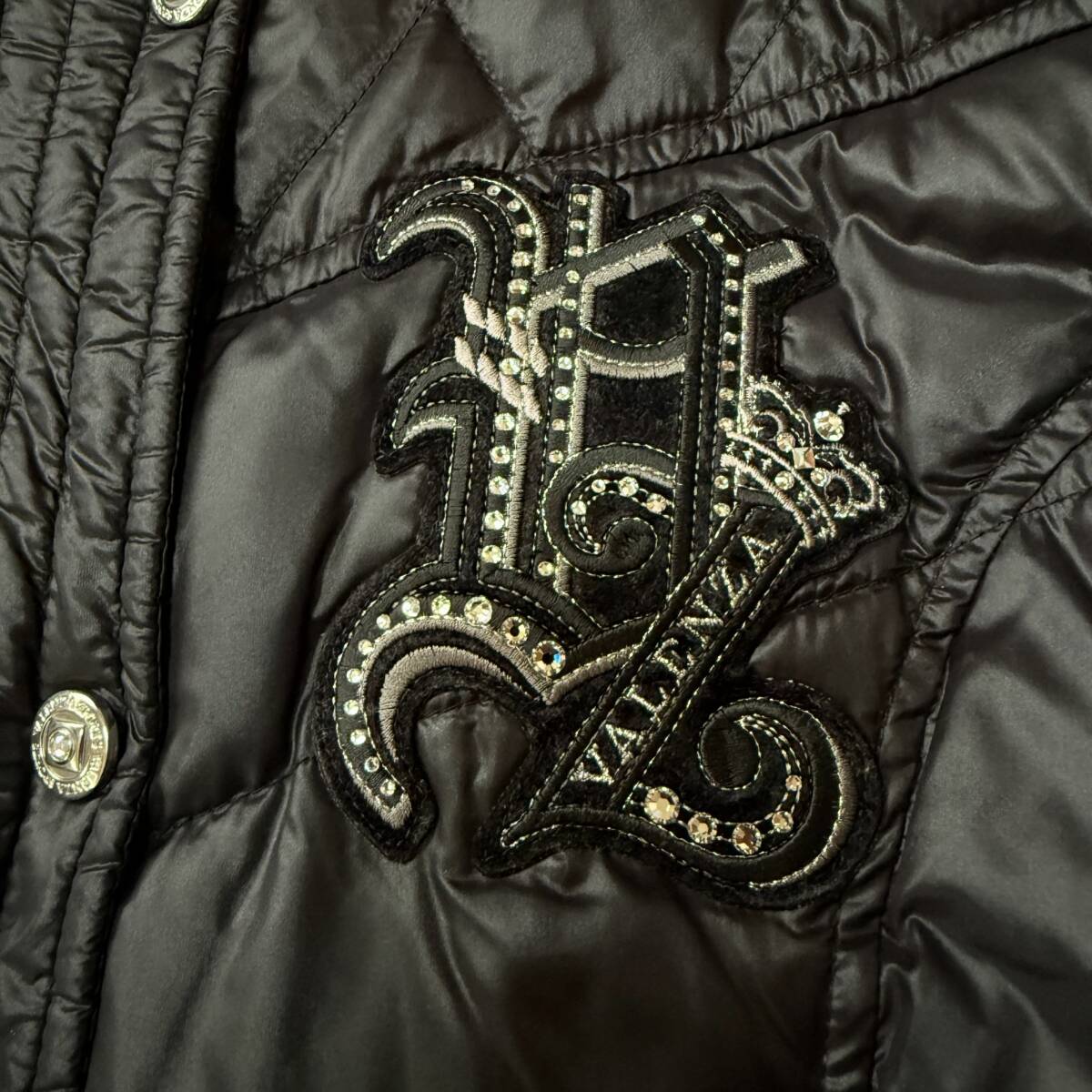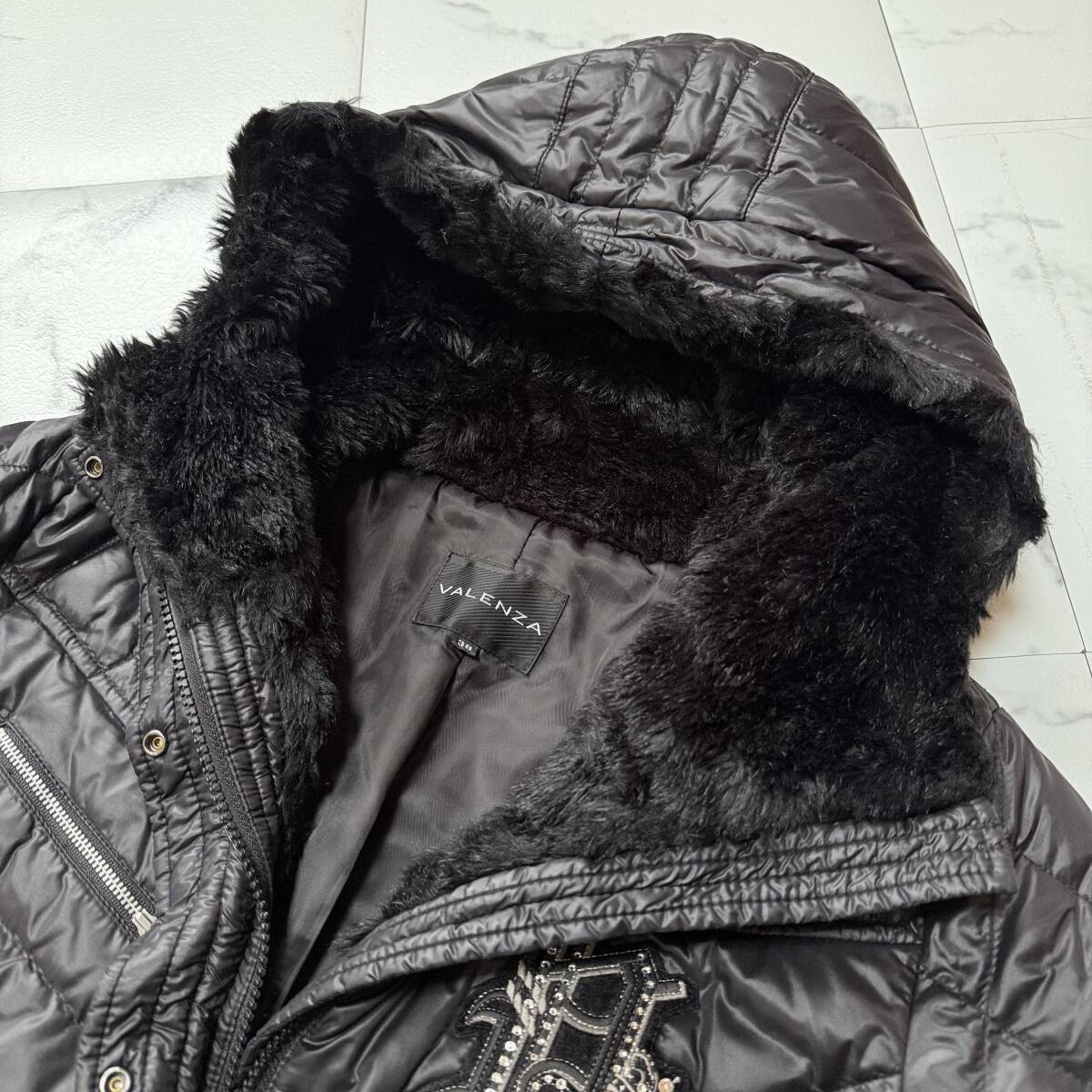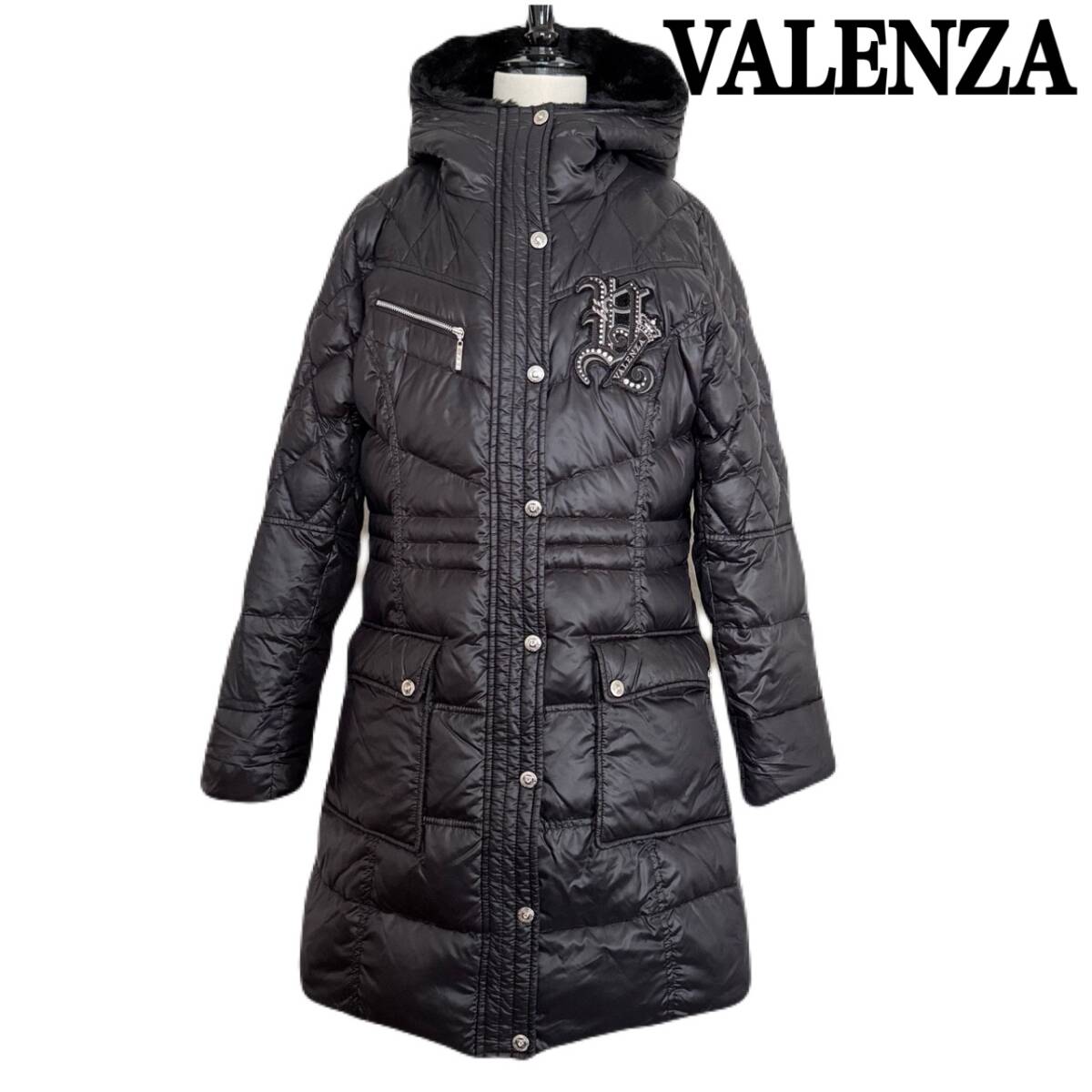 | ★ 商品名 ★ VALENZA バレンザ 近年モデル ロゴ ランストーン ワッペン ラインストーン ボタン ダウン90 フェザー10 黄金比 ロングコート ブラック サイズ 38 ★ |