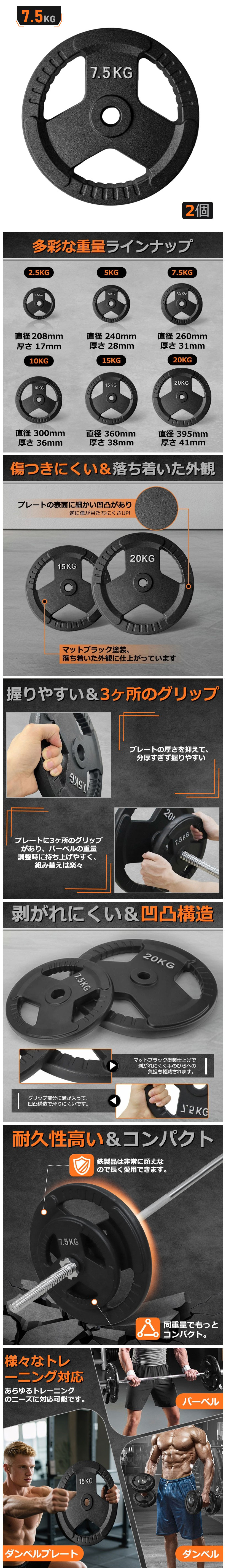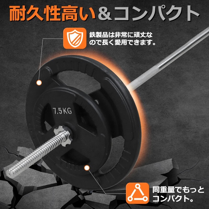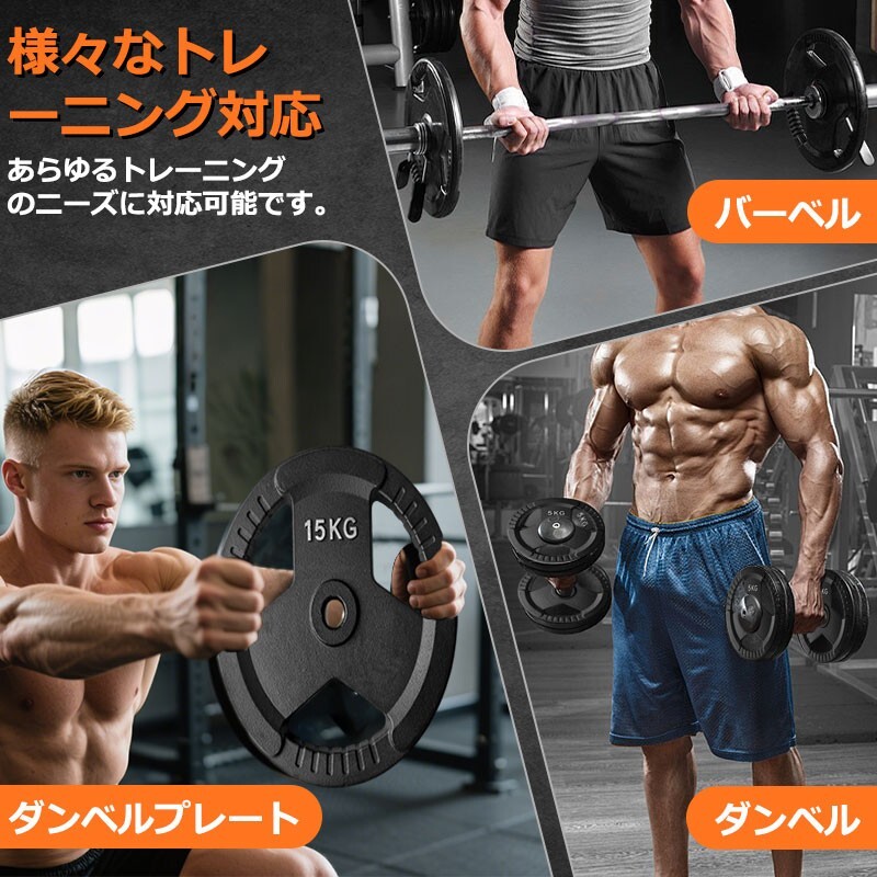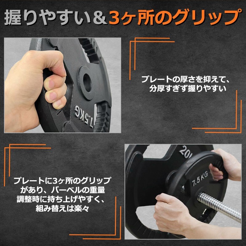 ◆3ヶ所グリップ:しっかりと握れる穴あきデザインをバーベルプレートに採用し、準備から重量調整、片付けまでがパワーを消耗せずスムーズに。