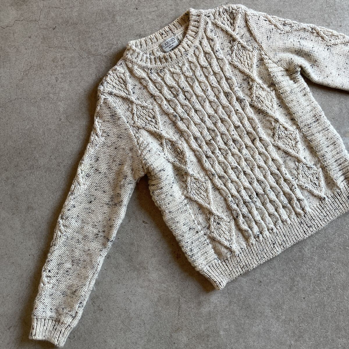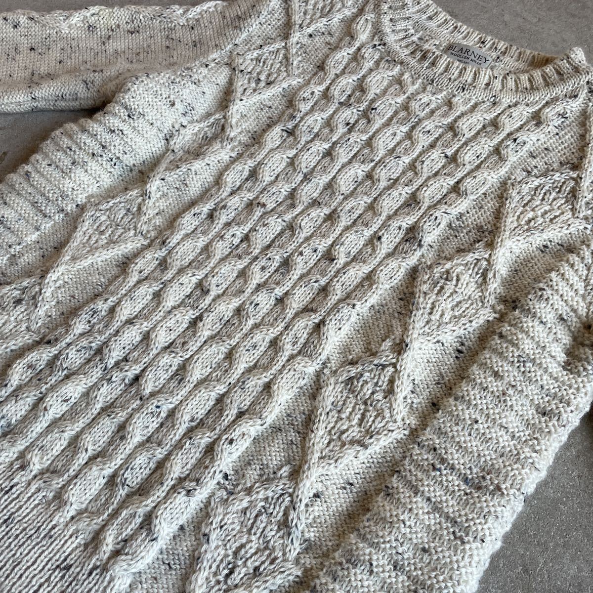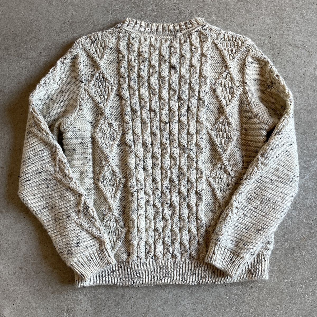 ビンテージ アイルランド製 アランニット 5 ヴィンテージ フィッシャーマン ケーブル編み 肉厚 アイボリー霜降り メンズ レディース ウール