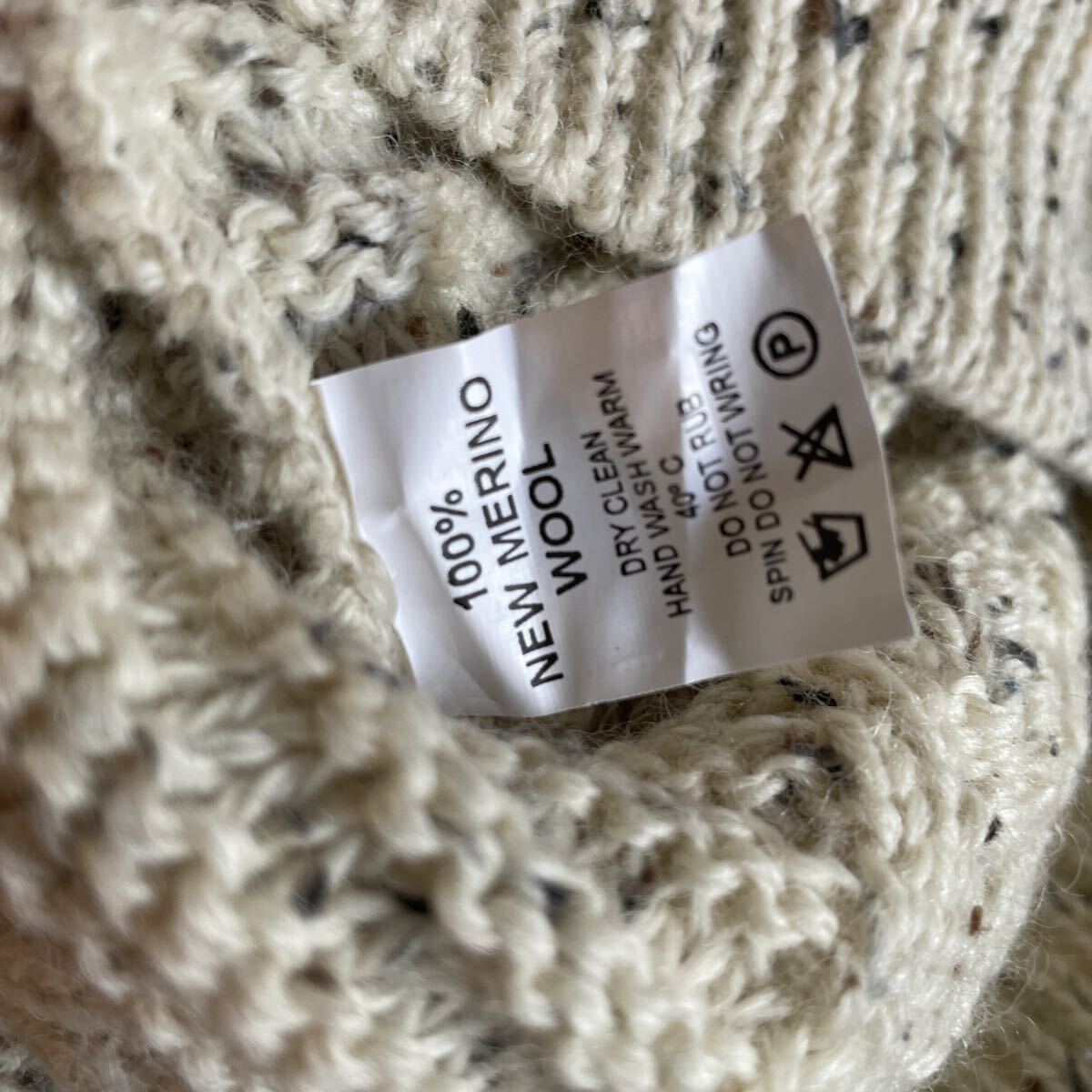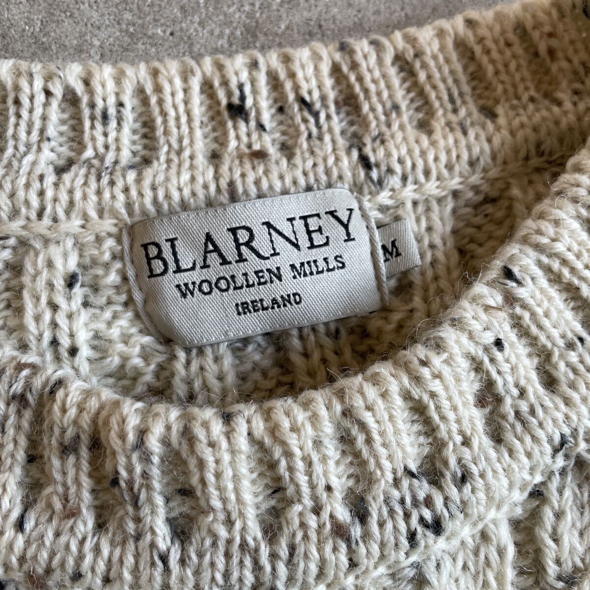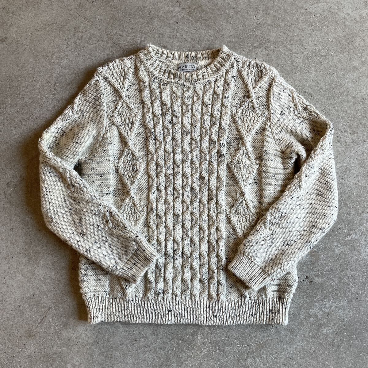 ビンテージ アイルランド製 アランニット 5 ヴィンテージ フィッシャーマン ケーブル編み 肉厚 アイボリー霜降り メンズ レディース ウール