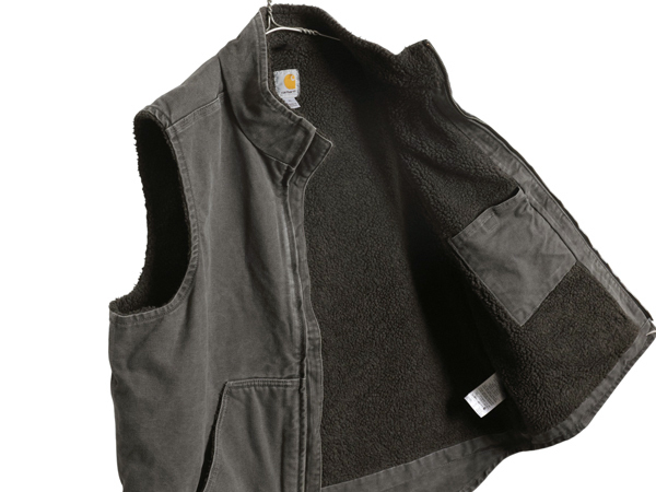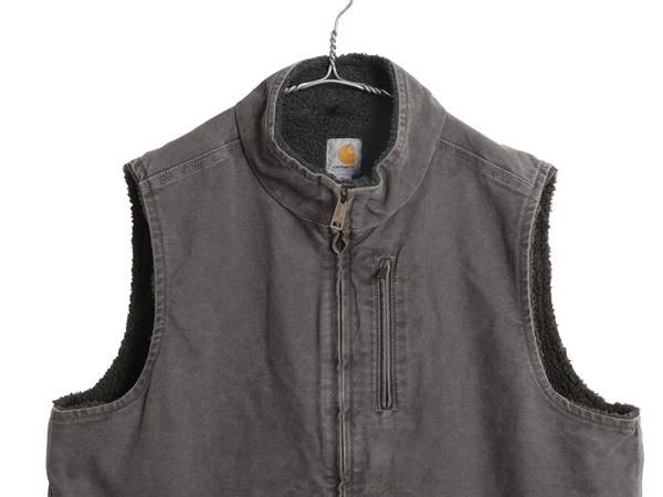 | 商品名 | US企画 カーハート モックネック ダック ベスト メンズ XL / 裏 ボア パイル フリース フルジップ ワーク 重ね着 前開き 大きいサイズ 濃灰 |