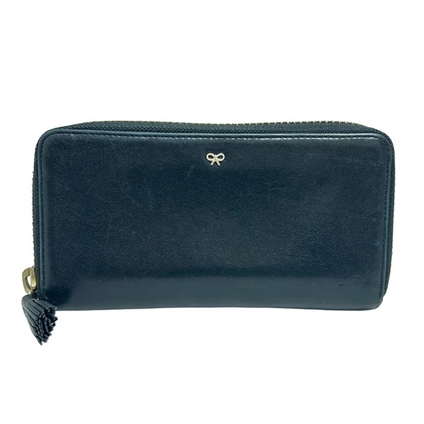 アニヤハインドマーチ Anya Hindmarch 長財布 - レザー 黒 タッセル/ラウンドファスナー 財布