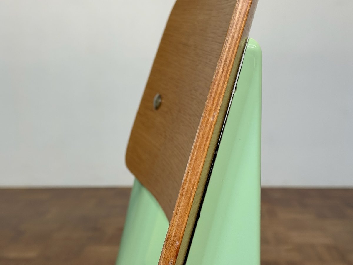 国内の小学校で使用されるデスクチェアのような簡易的なプライウッド仕様ですが、力学的な視点から後脚のフォルムと素材にデザイン的な特徴を与えることで、独特なあいらしさを持たせた逸品。