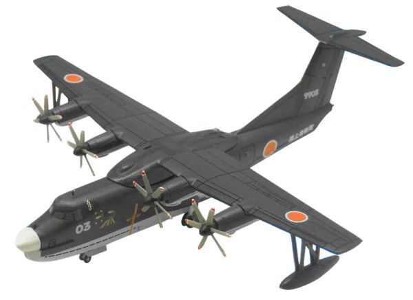 01号機と02号機は試作機で、最初01号機は白赤、02号機は白青に塗ってあったのですが、その後、部隊配備された際に量産型と同じ洋上迷彩に塗り直され、救難任務に従事しました。