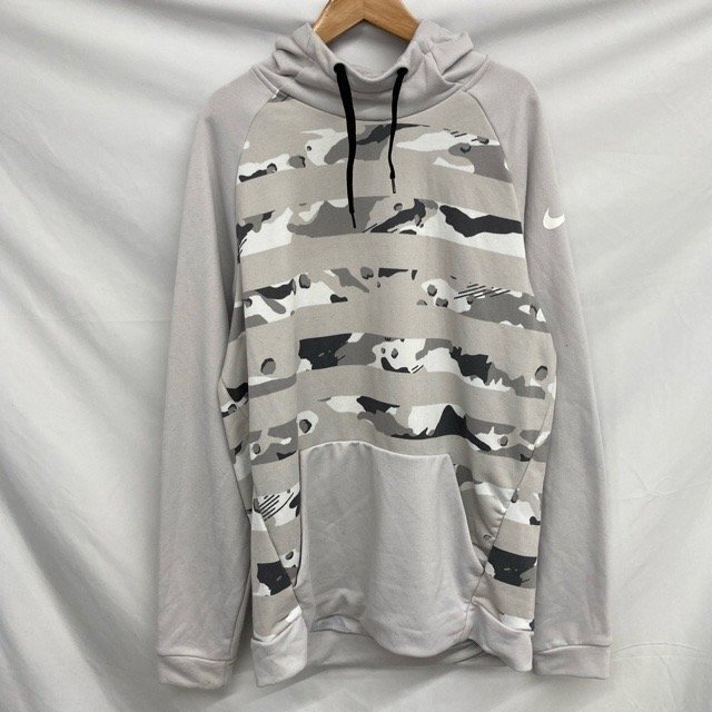 A392 NIKE カモ切替 スウェット パーカー L 迷彩 カモフラ グレー ポリエステル ナイキ メンズ