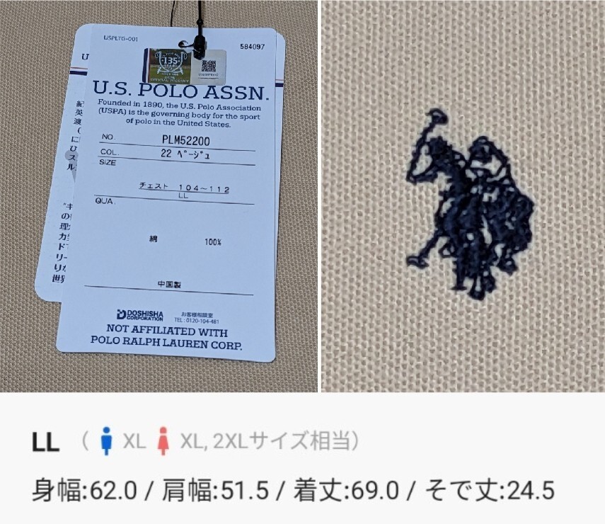 サイズ LL(サイズ詳細は7枚目の写真をご覧ください)