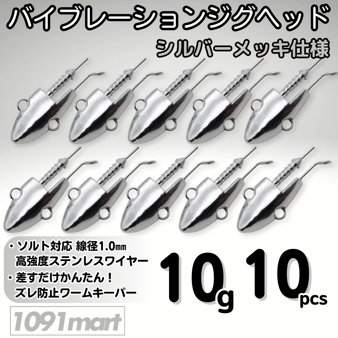 バイブレーションジグヘッド シルバーメッキ仕様 10g 10個セット スイミングジグヘッド VJ風 シーバスルアー ワーム【1091mart】