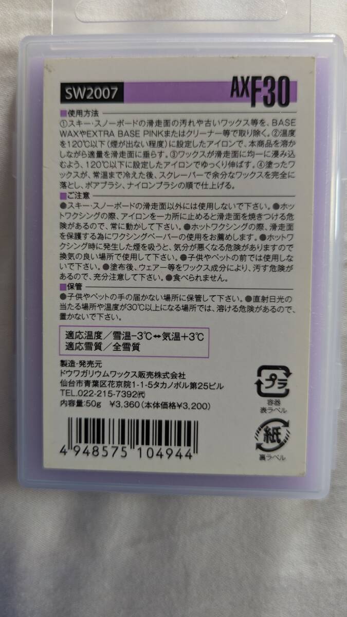 ガリウム ワックス AXF30 −3℃〜+3℃ HF ハイフッ素 フッ素高含有 バイオレット 50g