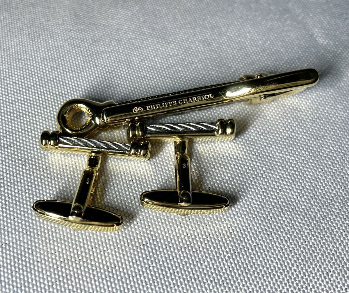 即決美品 PHILIPPE CHARRIOL フィリップシャリオール ワイヤー ケーブル ゴールド&シルバー カフス ネクタイピン セット タイピン メンズ