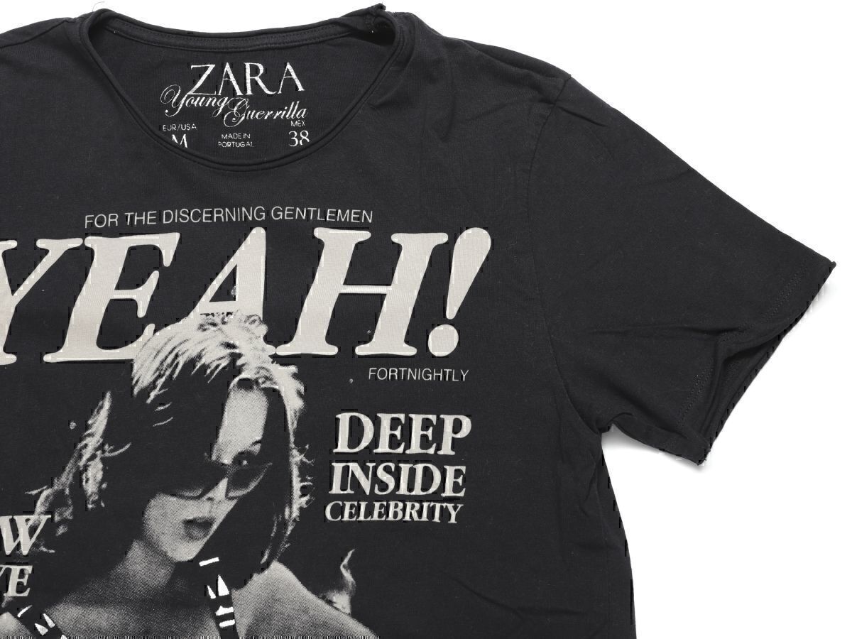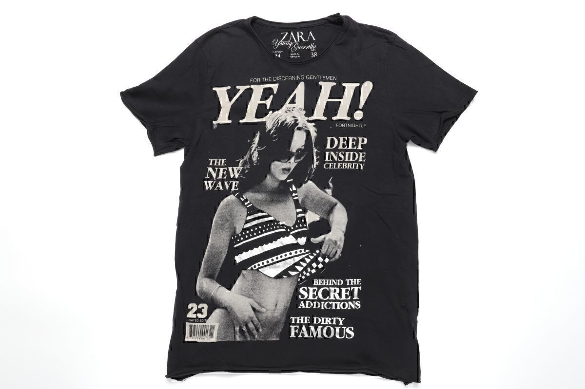 即決★古着★ZARA ザラ ピクチャーデザインクルーネック半袖Tシャツ★M38★ブラック黒【本物保証】正規品★セレブ愛用デザイン★高見え商品