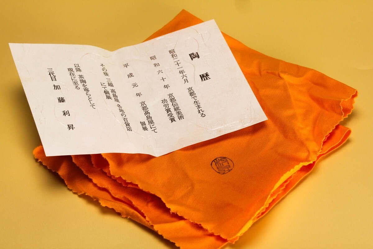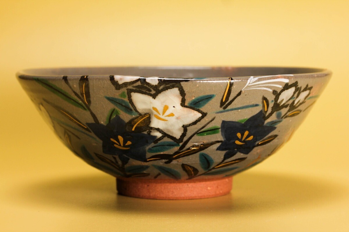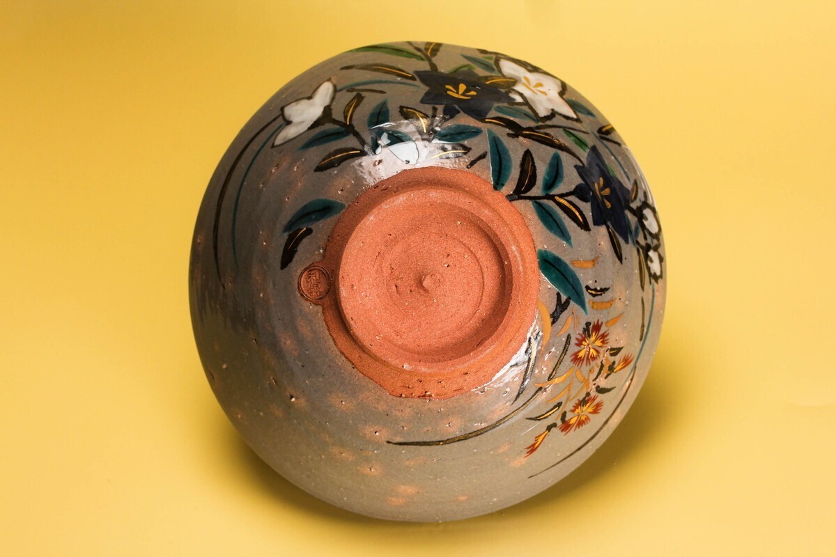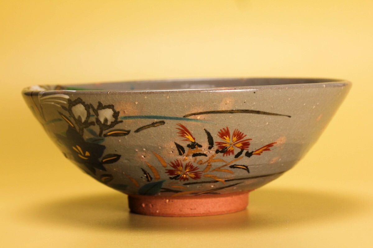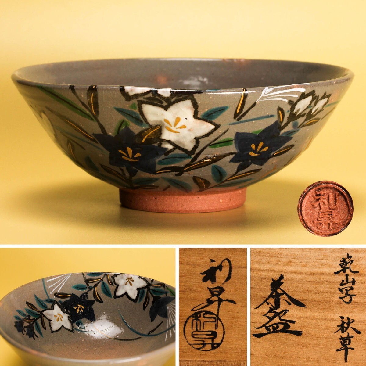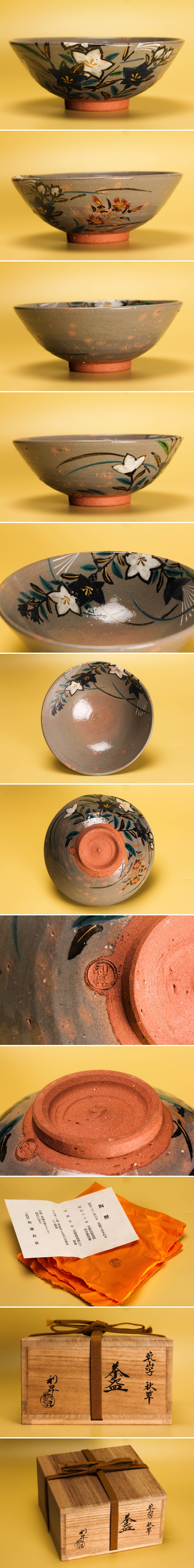 三代 加藤利昇 乾山写秋草茶碗 共箱 共布 栞 茶道具 本物保証