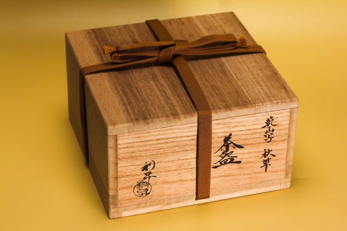 稀に他の作品名・作家名が書き付けられた木箱をお付けしております。誤認防止のため箱書き部分の画像を掲載しない場合もございます。