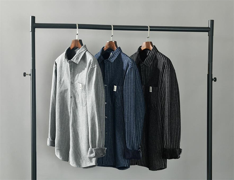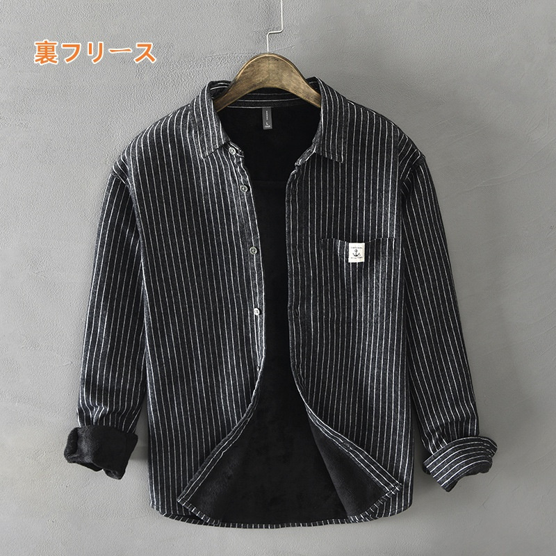 裏フリース トップス シャツジャケット 長袖シャツ 裏ボア ブルゾン ストライプ メンズ・新品 ライトアウター ブルゾン【Z513】黒色 3XL