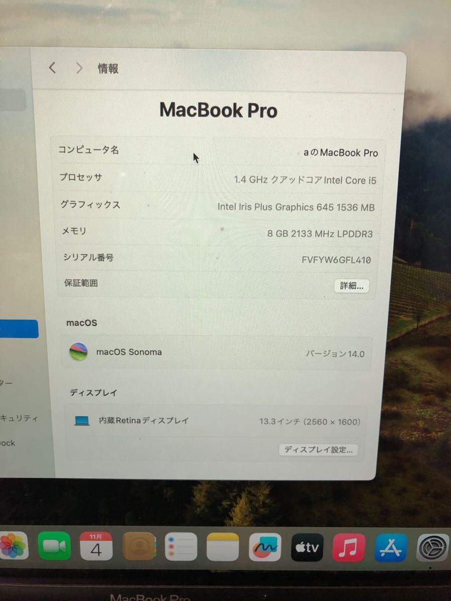 プロセッサ: 1.4GHzクアッドコアIntel Core i5