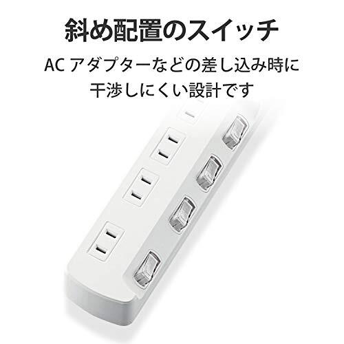 エレコム 電源タップ 個別スイッチ 省エネ スイングプラグ 4個口 3m ホワイト T-E5A-2430WH