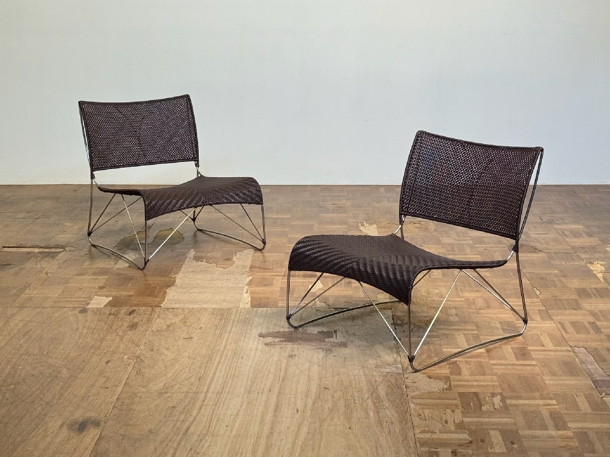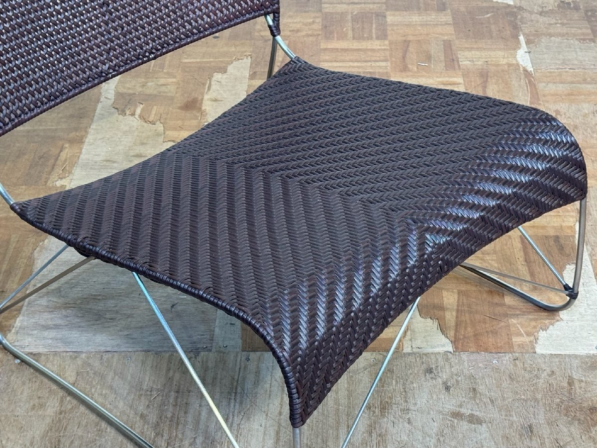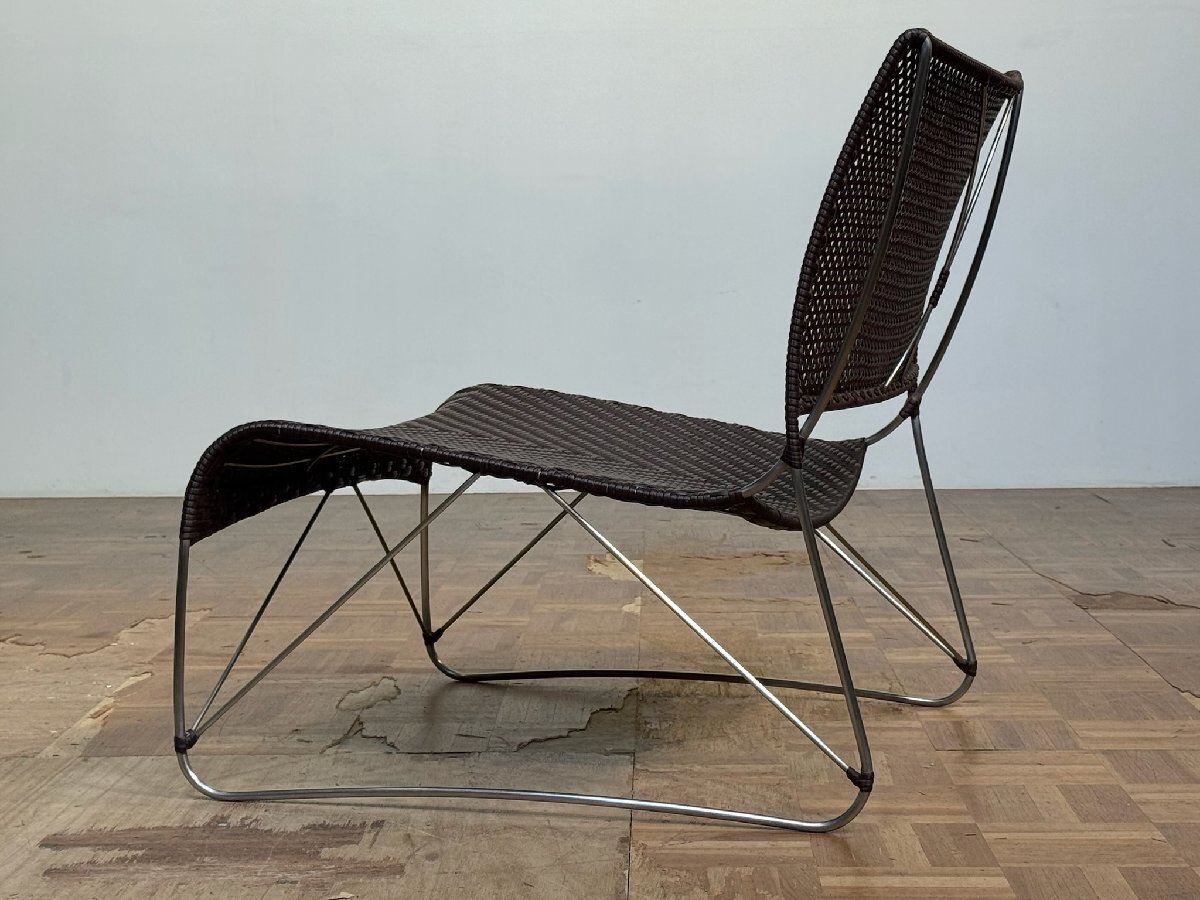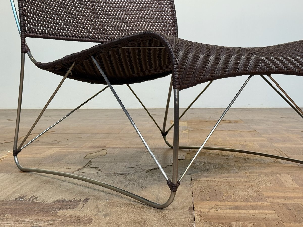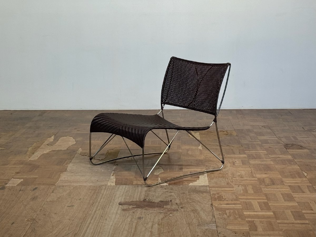 モダニズムデザインの影響を受け、ラタン材と極細のスチールワイヤーを用いた軽快なデザインに仕上げたミニマリズムラウンジチェア。