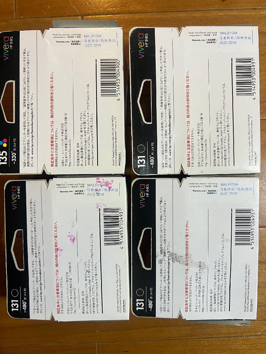 | 商品説明 | HP 純正インクカートリッジ131 135 4点セットの出品です。※在庫多数ありますのでシアル番号等が異なりますのでご了承ください。 |