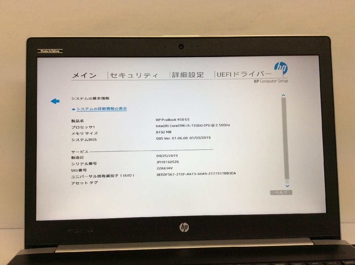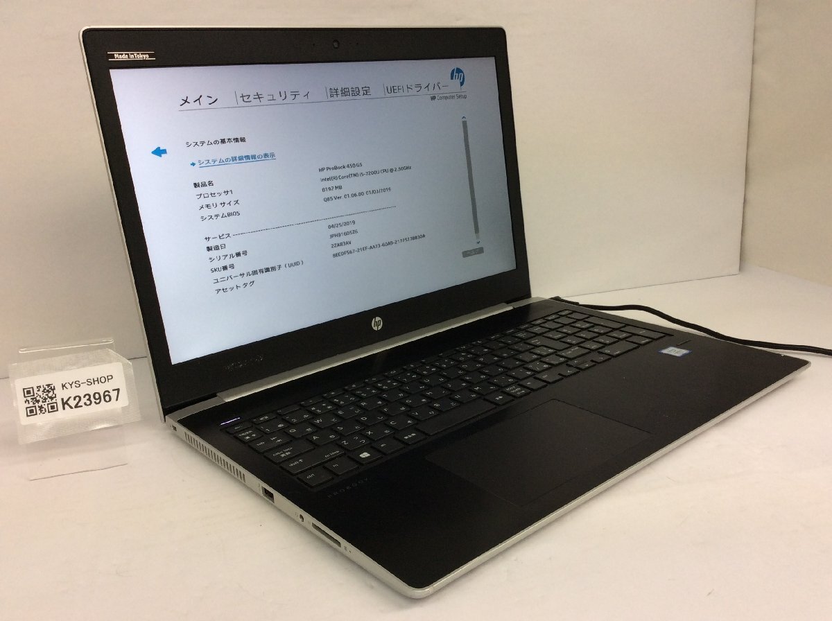 ジャンク/ HP HP ProBook 450 G5 Intel Core i5-7200U メモリ8.19GB ストレージ無し 【K23967】