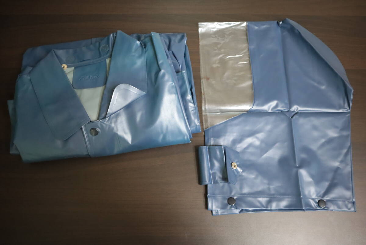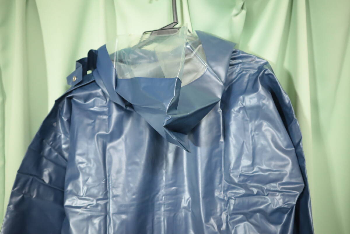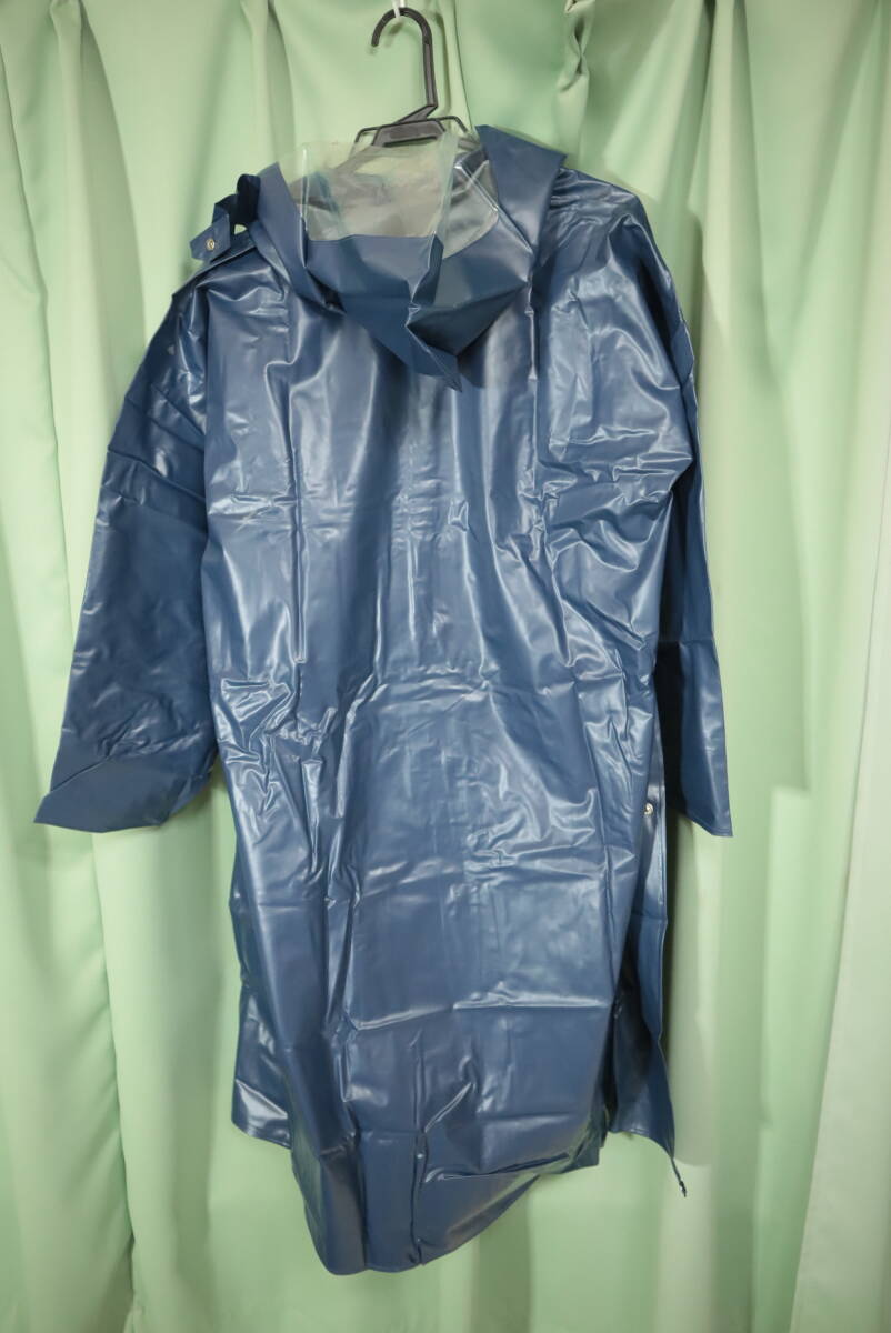 | ☆レトロ 光沢ビニール長雨合羽 レインコート上 ネイビー110☆ |