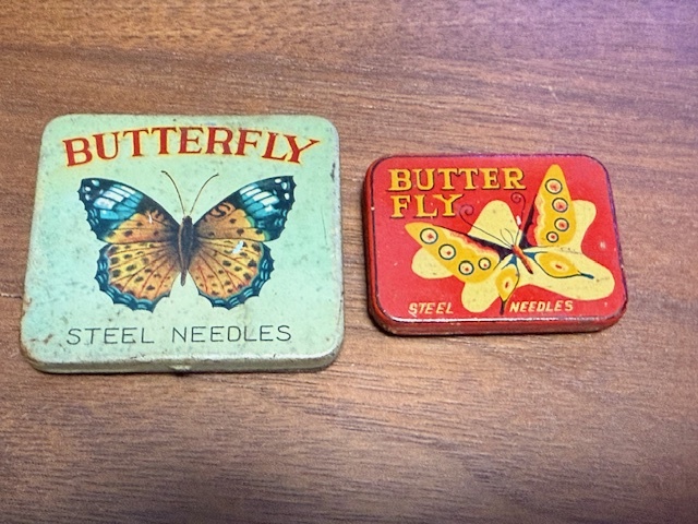 蓄音機用 針缶2つ/BUTTERFLY STEEL NEEDLES+赤BUTTERFLY STEEL NEEDLES 写真参照 まとめて