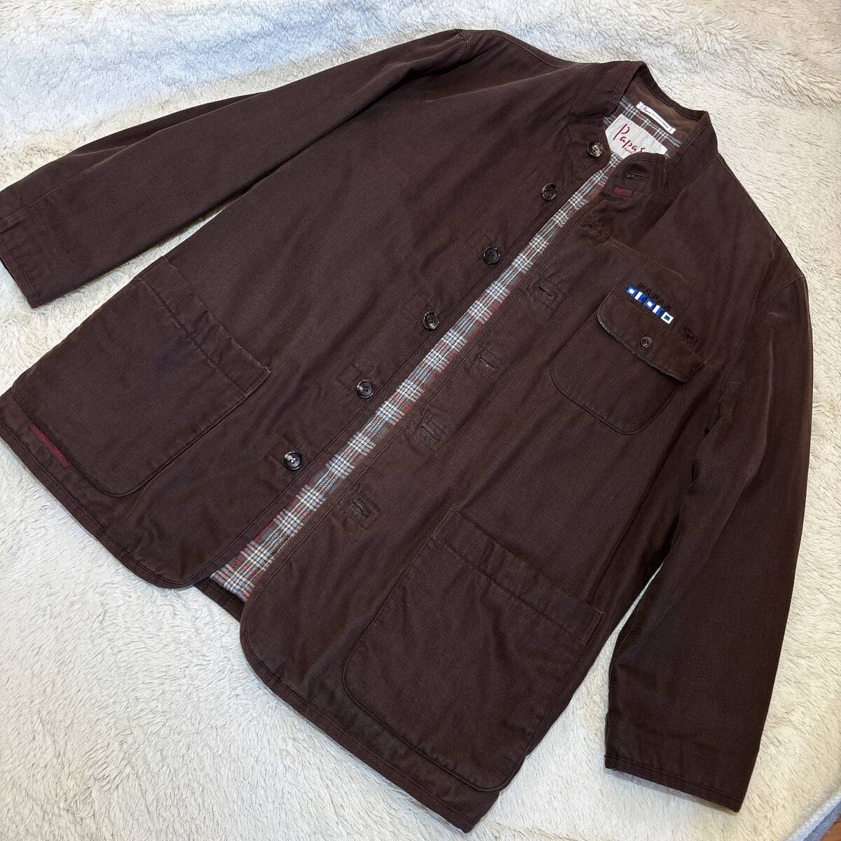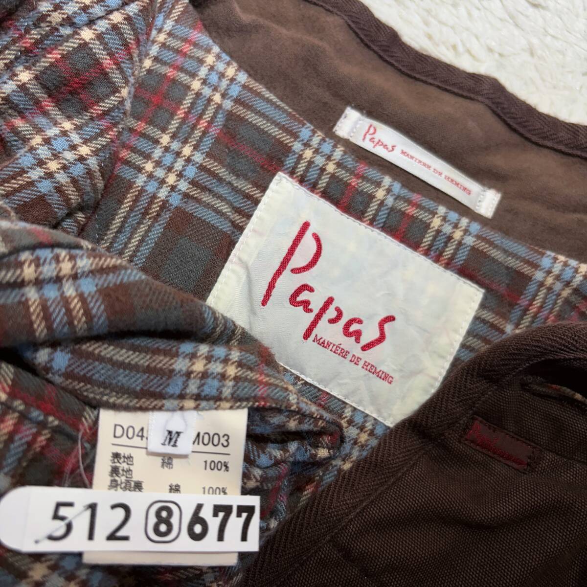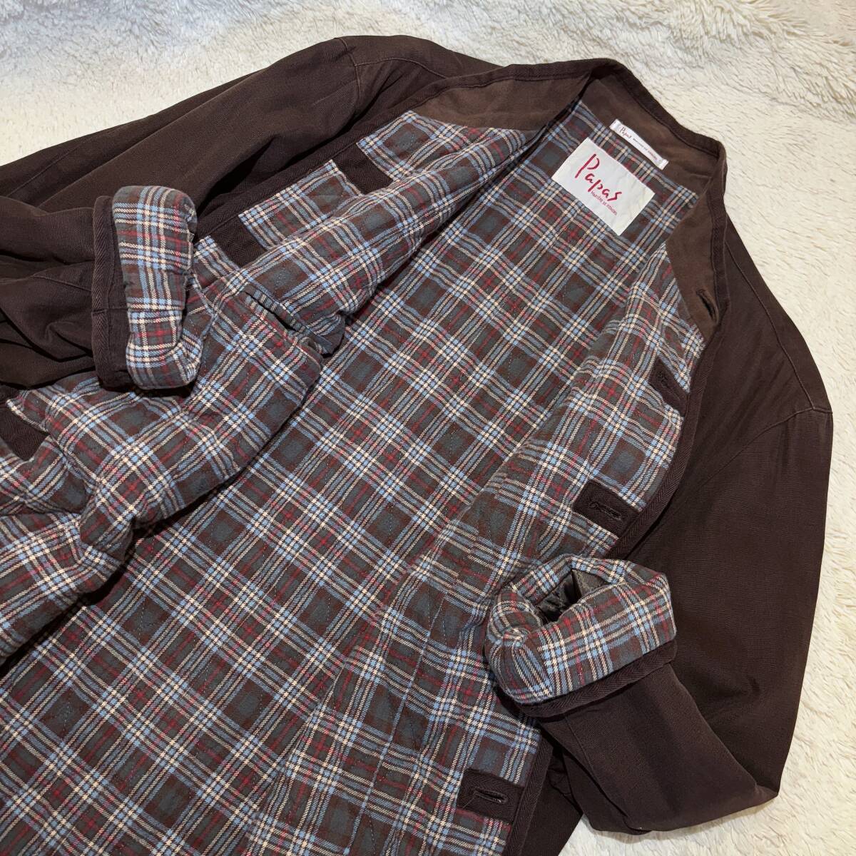 | X723■Papas/パパス★こげ茶/キルティングネルチェック★ハーフコートジャケット■M | ||||||||||||||||||||
