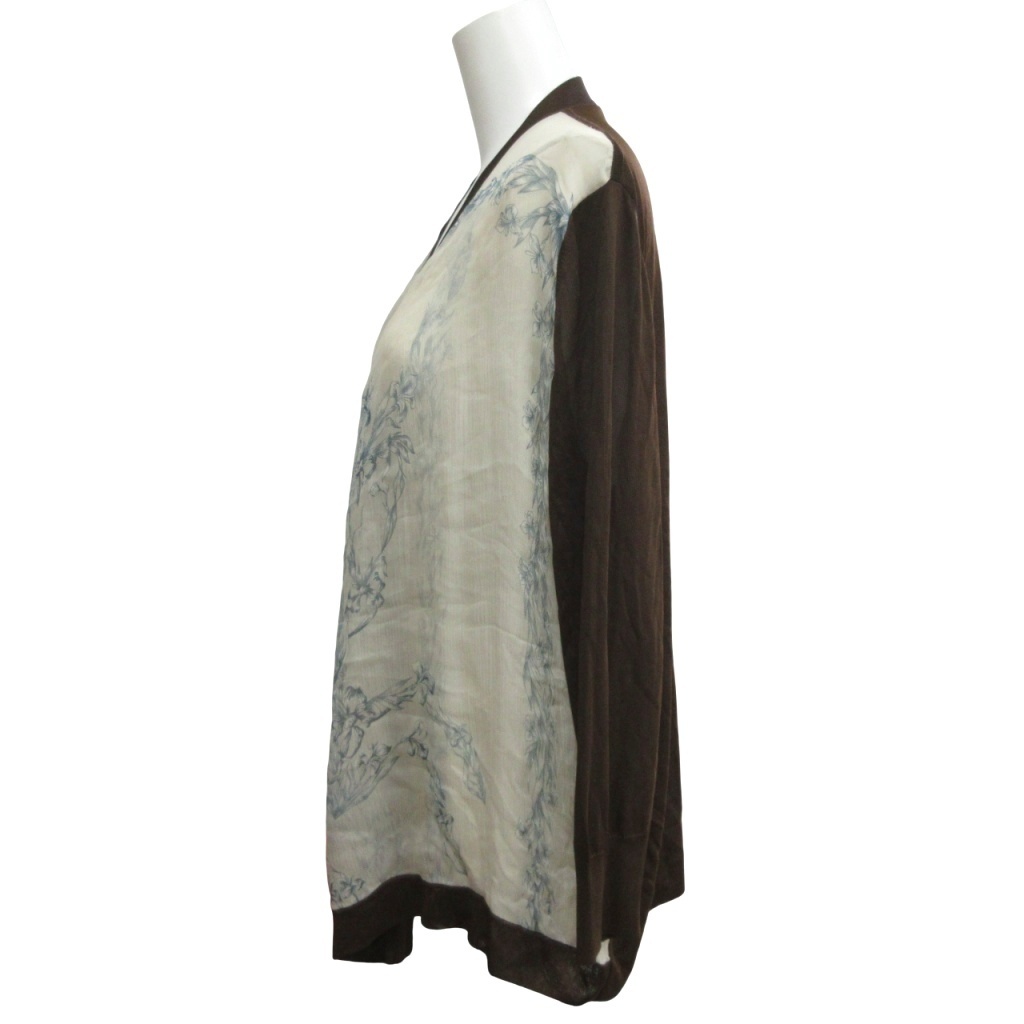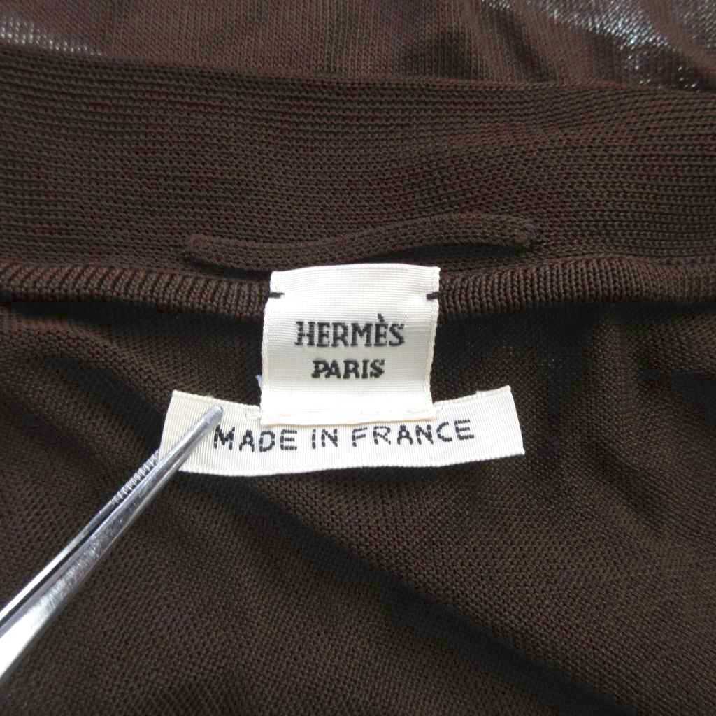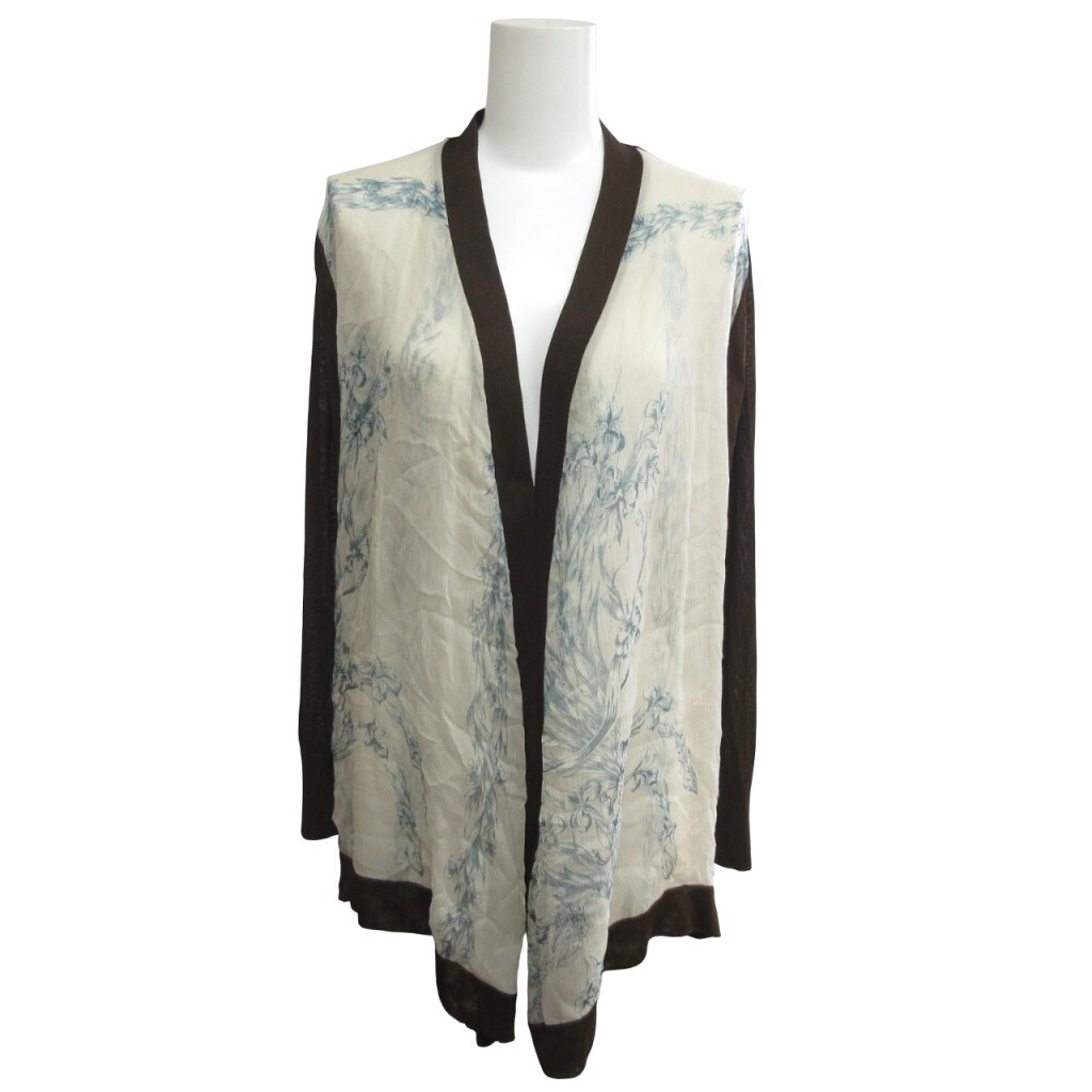 エルメス HERMES 美品 ゴルチエ期 シルク×ビスコース カーディガン シアー 花柄 国内正規 茶 ブラウン L ■MNK2 レディース