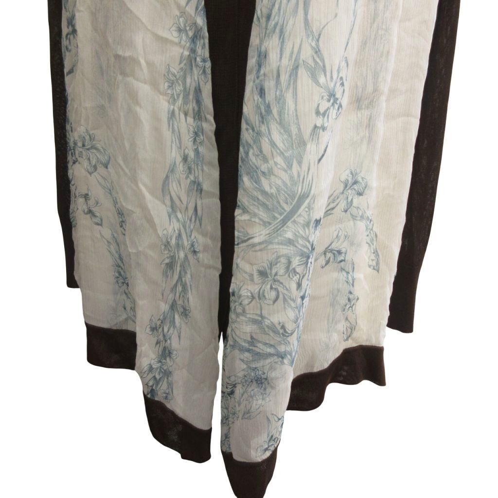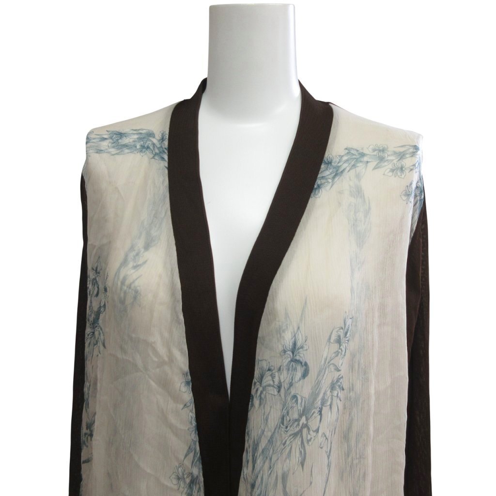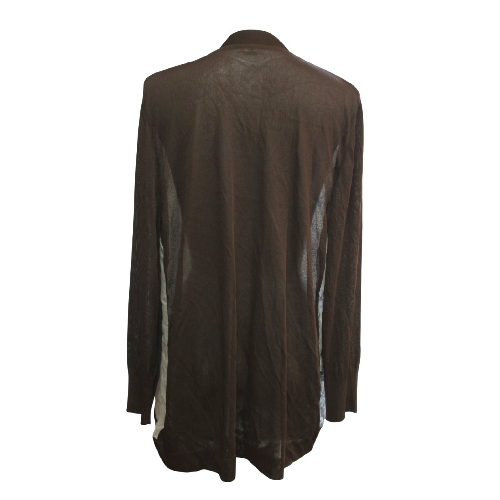 エルメス HERMES 美品 ゴルチエ期 シルク×ビスコース カーディガン シアー 花柄 国内正規 茶 ブラウン L ■MNK2 レディース
