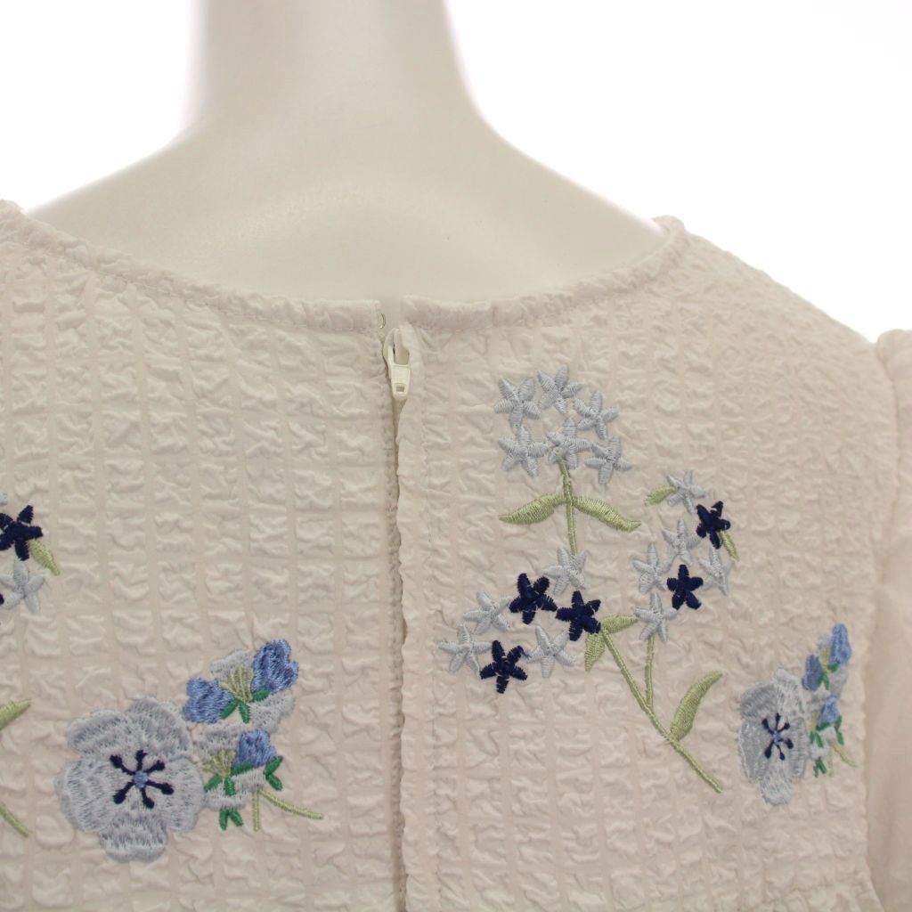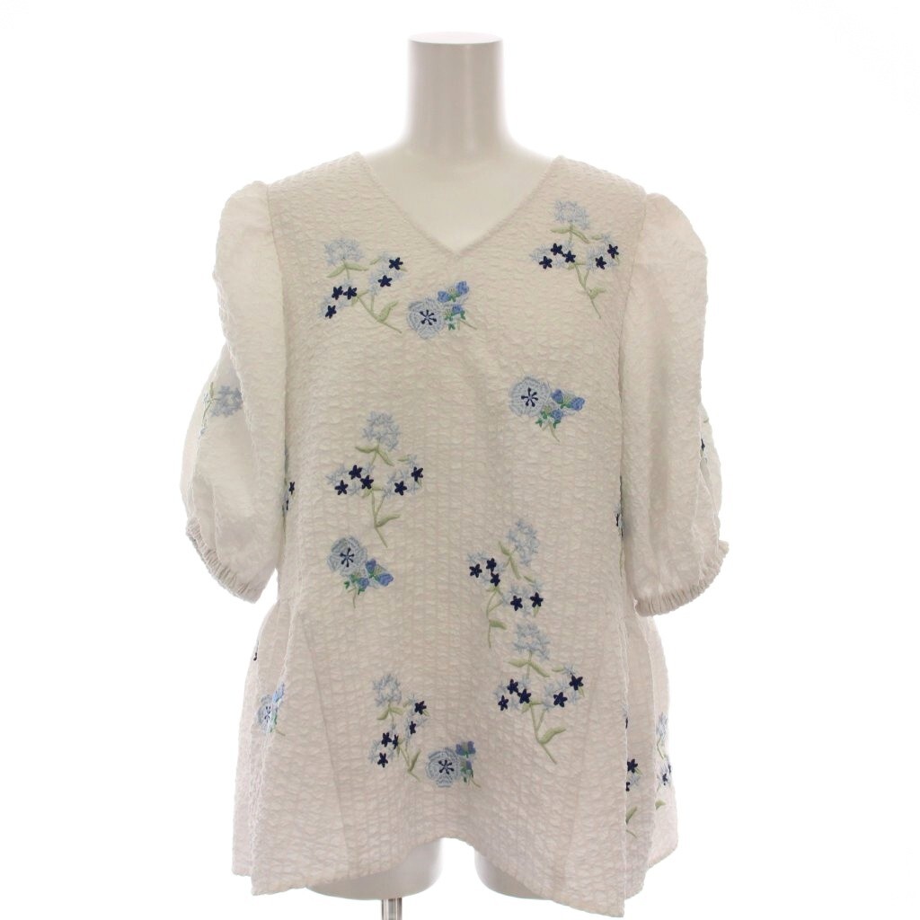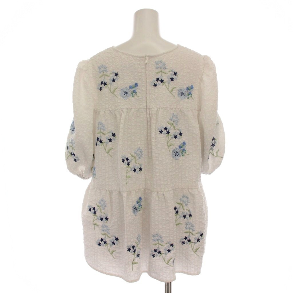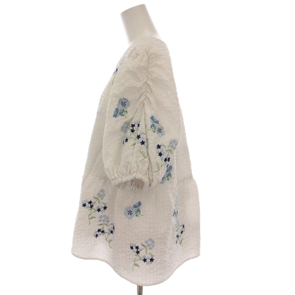 チェスティ Chesty フラワー刺繍 ジャガード パフスリーブ ブラウス カットソー 半袖 花柄 1 白 ホワイト 水色 23D602 /YM レディース