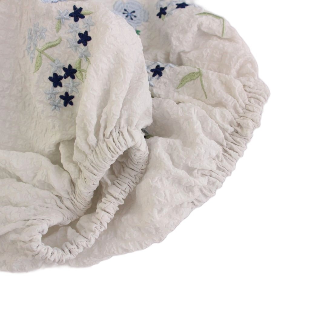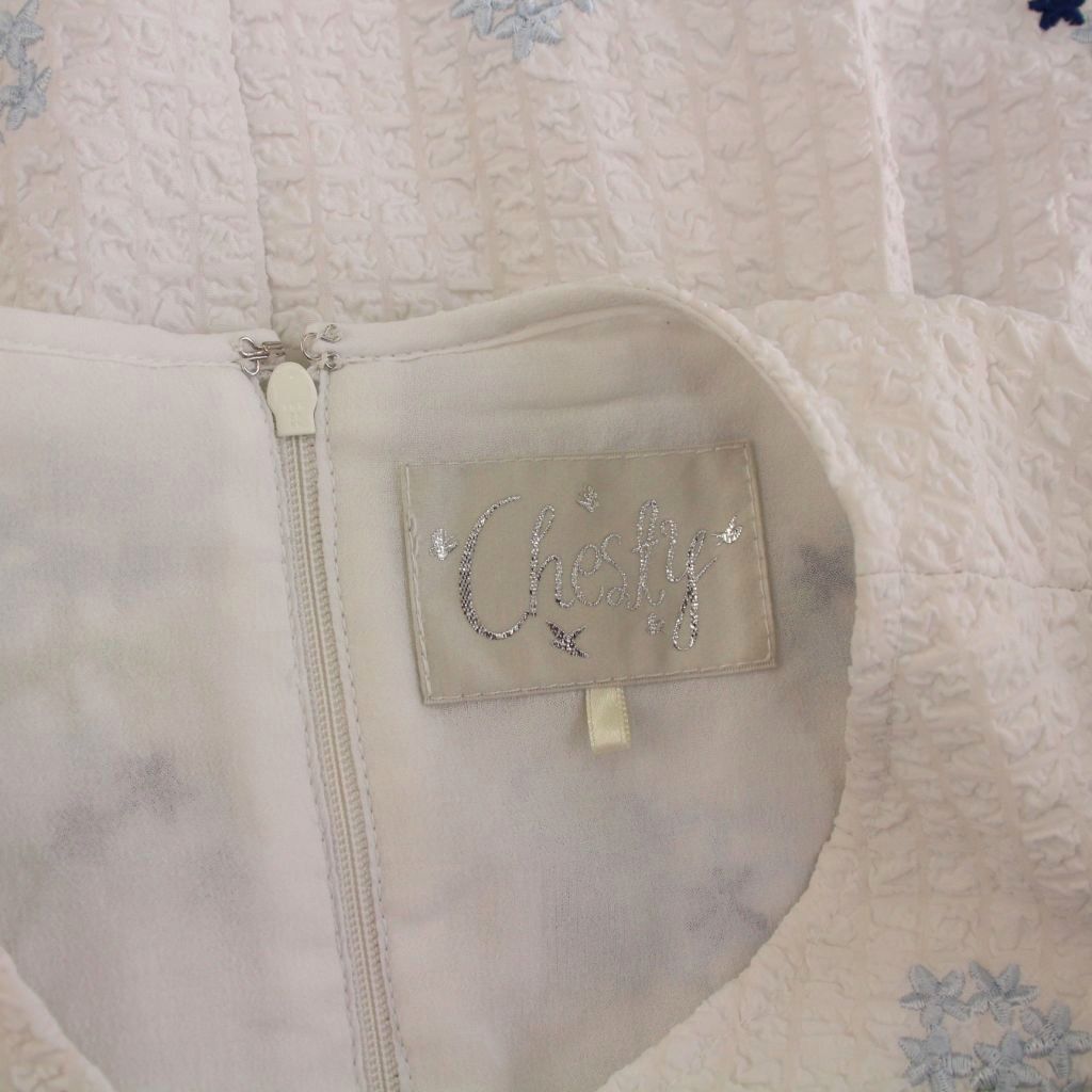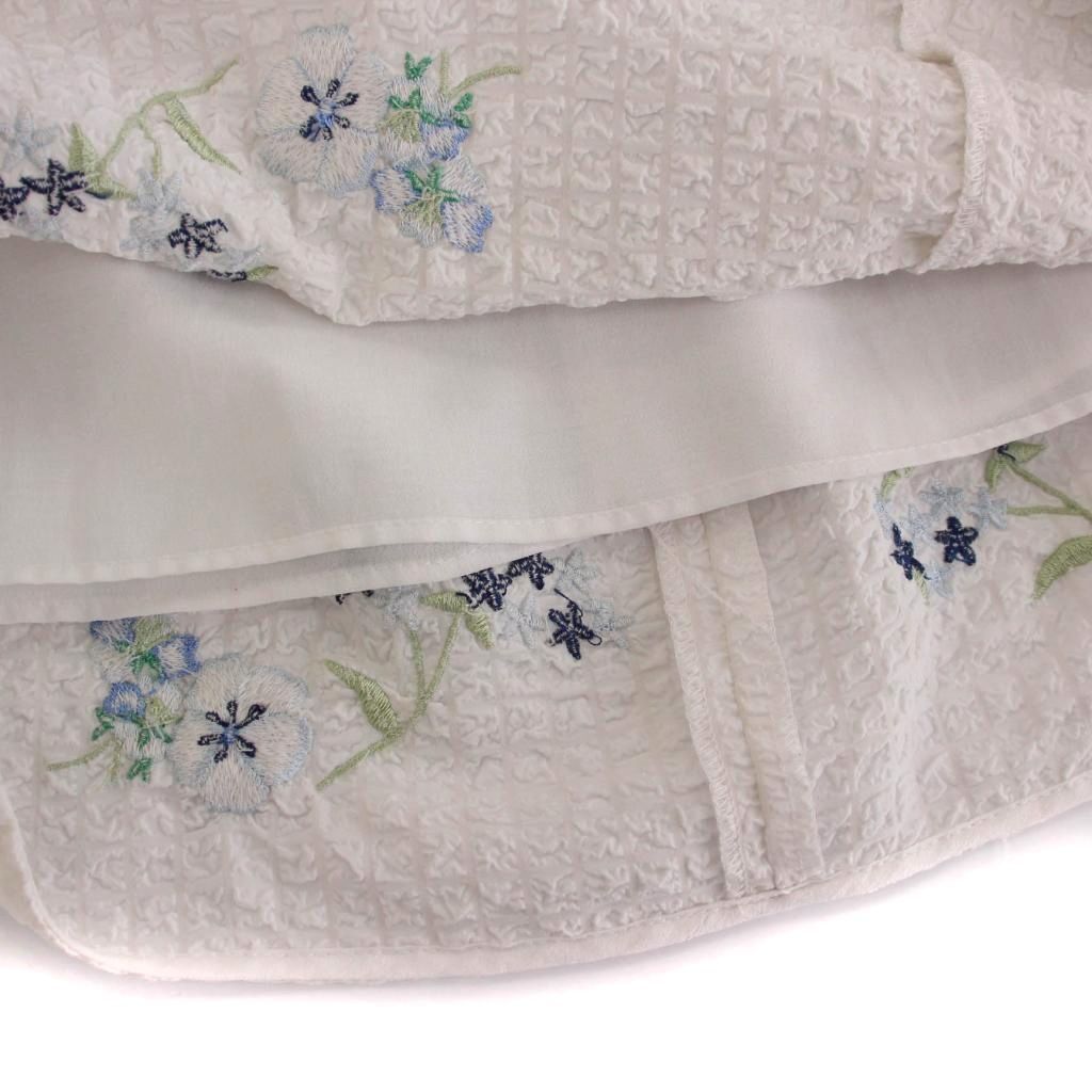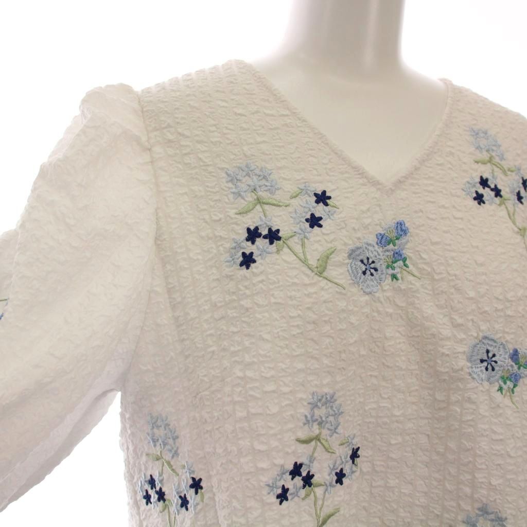 チェスティ Chesty フラワー刺繍 ジャガード パフスリーブ ブラウス カットソー 半袖 花柄 1 白 ホワイト 水色 23D602 /YM レディース