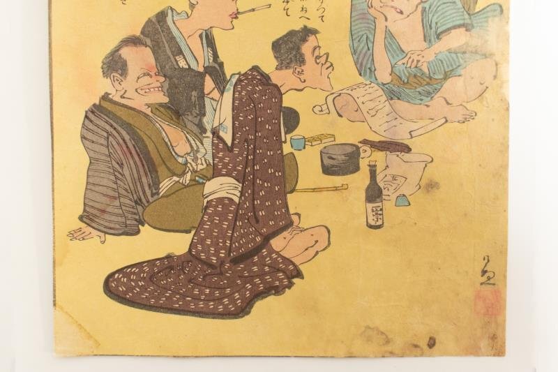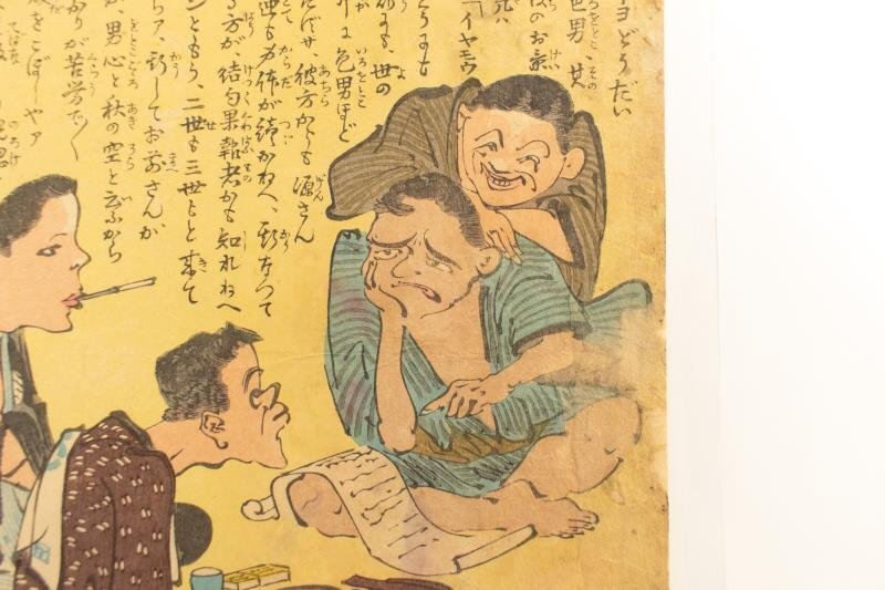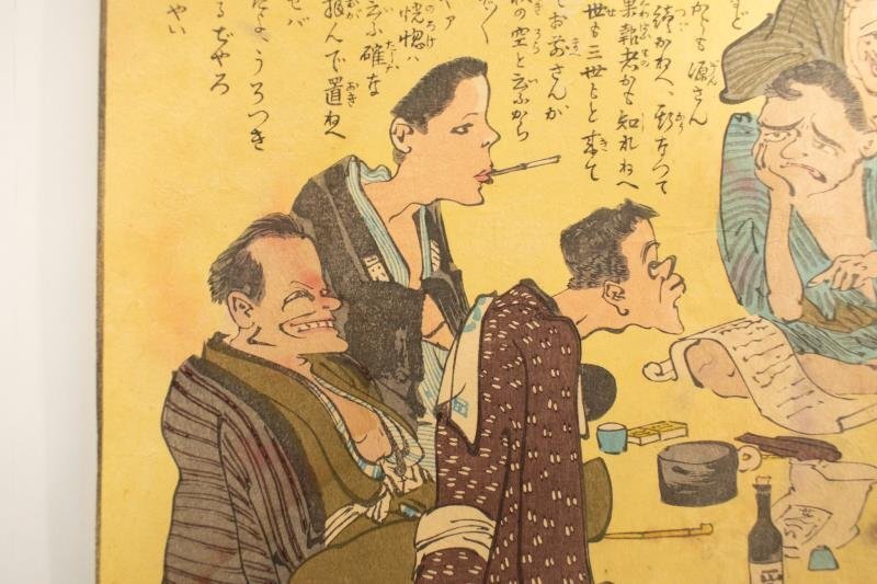 【中古】M▽小林清親 教育いろは談語 る 類を以て集まる 1897年 木版画 浮世絵 錦絵 大判 (K00597)