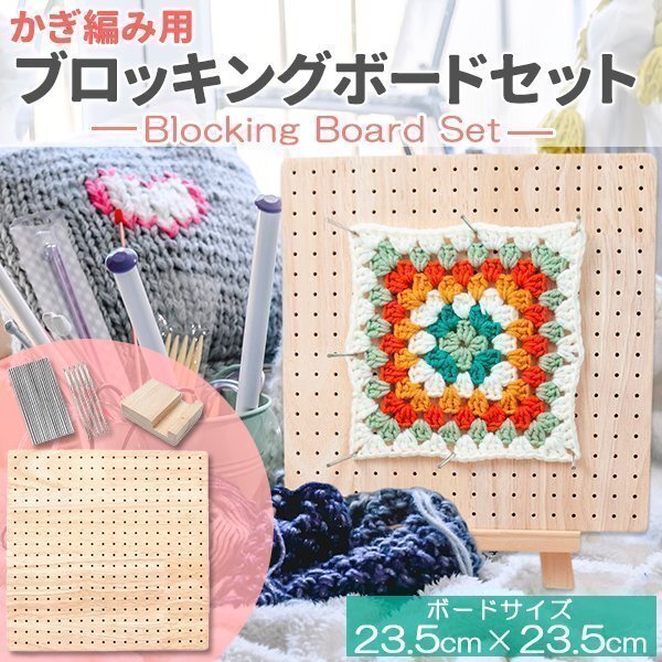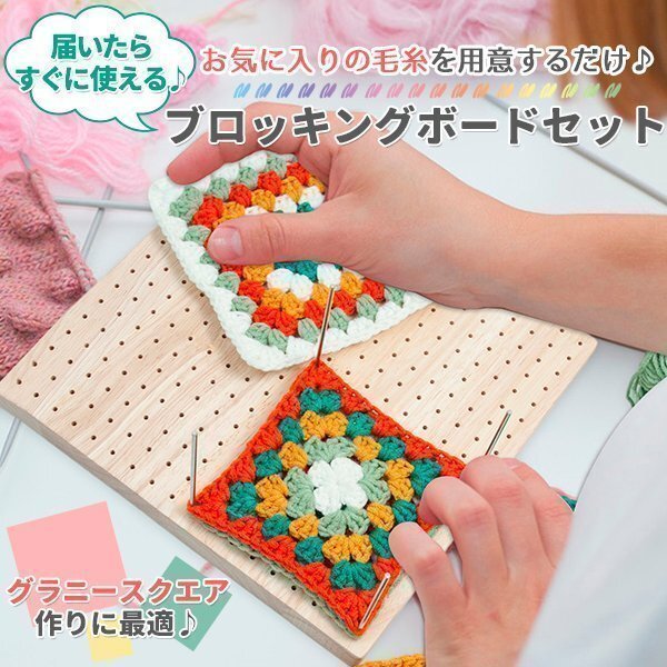 かぎ針編み ブロッキングボード 木製 ピン20本 ニードル5本 スタンド付き セット グラニースクエア 手作り 編み物 ブロッキングマット