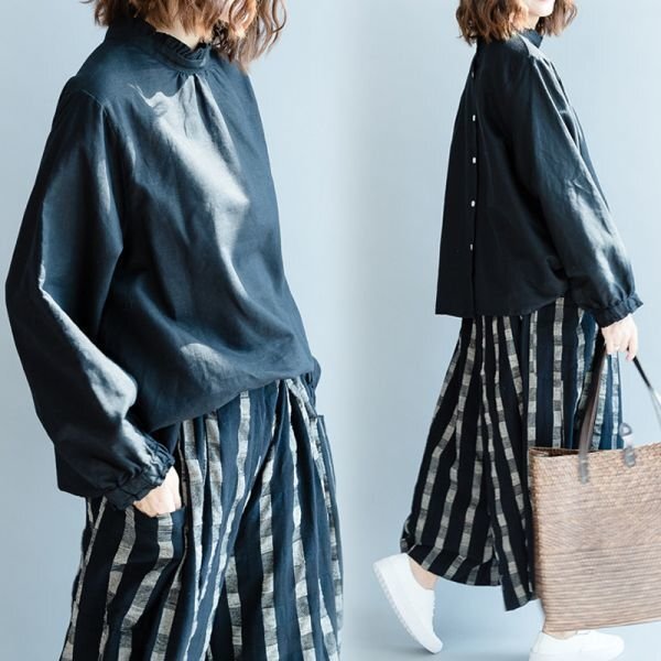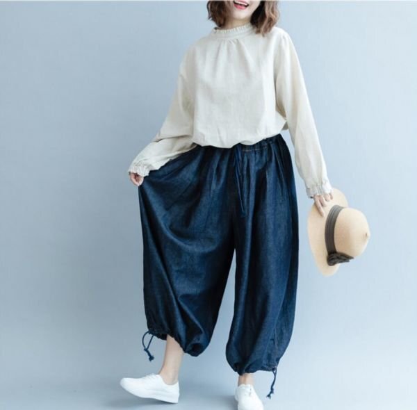 秋新品 大人気 ナチュラル ゆったり 無地 コットン 大きいサイズ 長袖 チュニック ★ 白 /Mサイズ