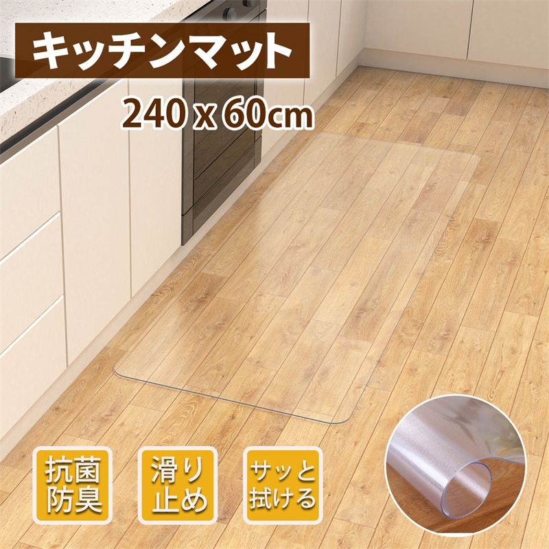 キッチンマット 透明 拭ける PVC おしゃれ キッチン マット 240 クリア 厚さ 防水 透明マット 床保護マット 保護シート 滑り止め