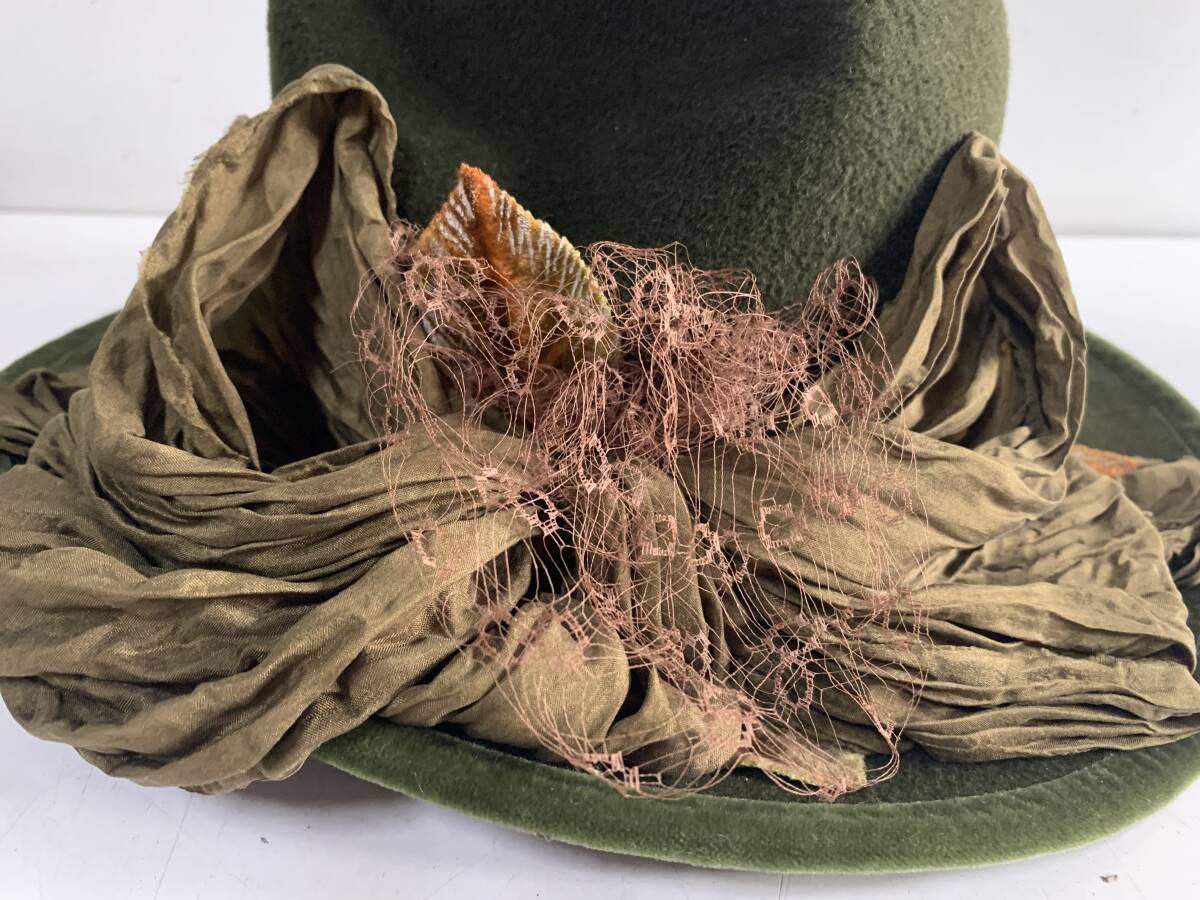 Louise GREEN ルイーズグリーン ハット 帽子 フェルト製 SANTA MONICA CA Hiko original by SANSYO タグ付き ハンドメイド レディース オリーブグリーン系 装飾 おしゃれ ファッション小物 箱付 写真にあるのが商品すべてとなります。 *その他の付属品はございません。 ◆商品状態◆ こちらの商品は代理出品となります。 中古品ですので、傷・汚れなどがついている可能性がございます。 外箱は商品のものではない可能性がございます。 梱包材としてお考え下さい。 現状渡しとなりますので、ノークレーム厳守でお願いいたします。 ご了承の上ご落札ください。 商品は1点物につき返品、交換できませんので、ご理解の上入札ください。 以上ノークレームでお願いします。 *記載内容と異なる場合はご連絡ください。 | ||||