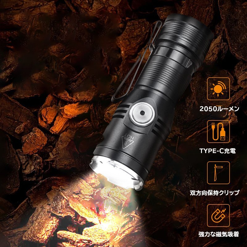 超高輝度 LED EDC 懐中電灯 2050LM Type-c 充電式トーチ テールマグネット IP67 防水緊急 キャンプランタン hw546