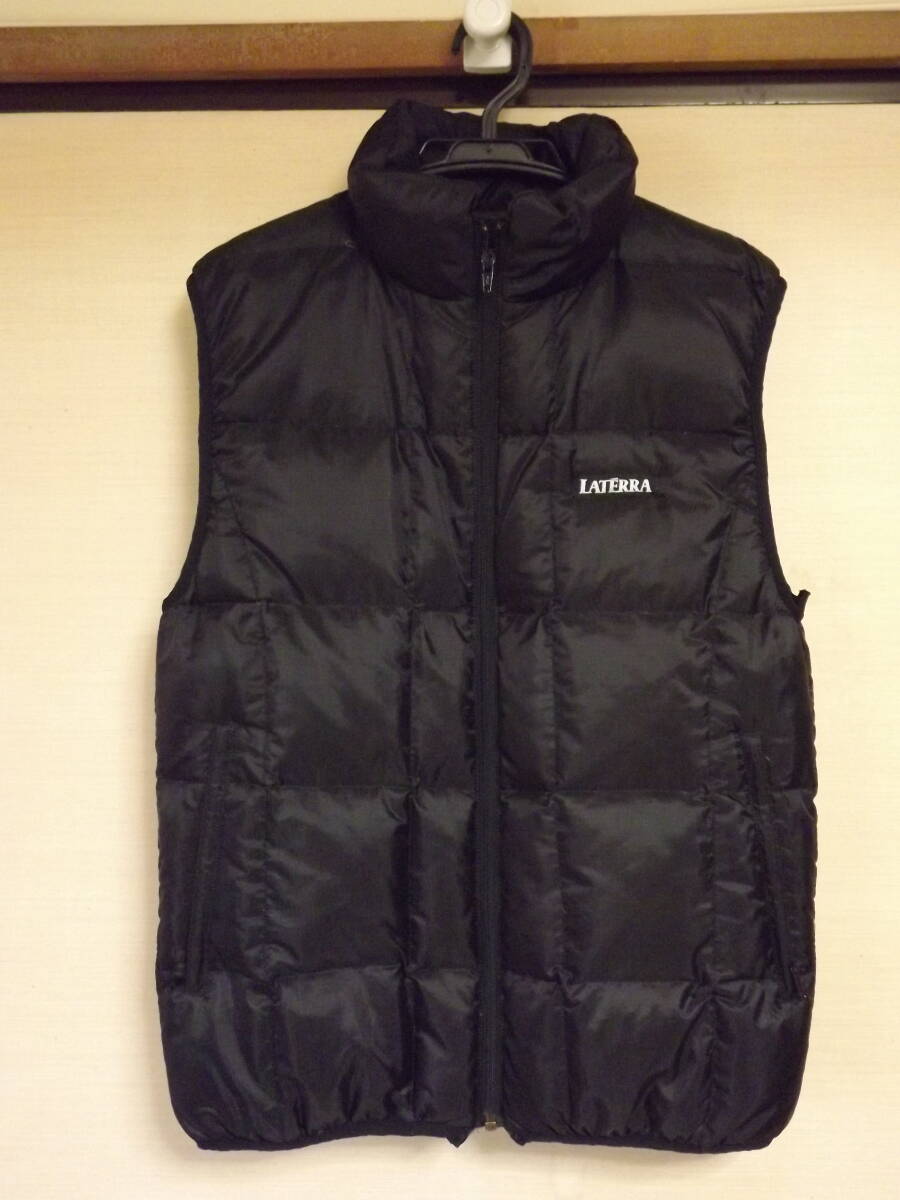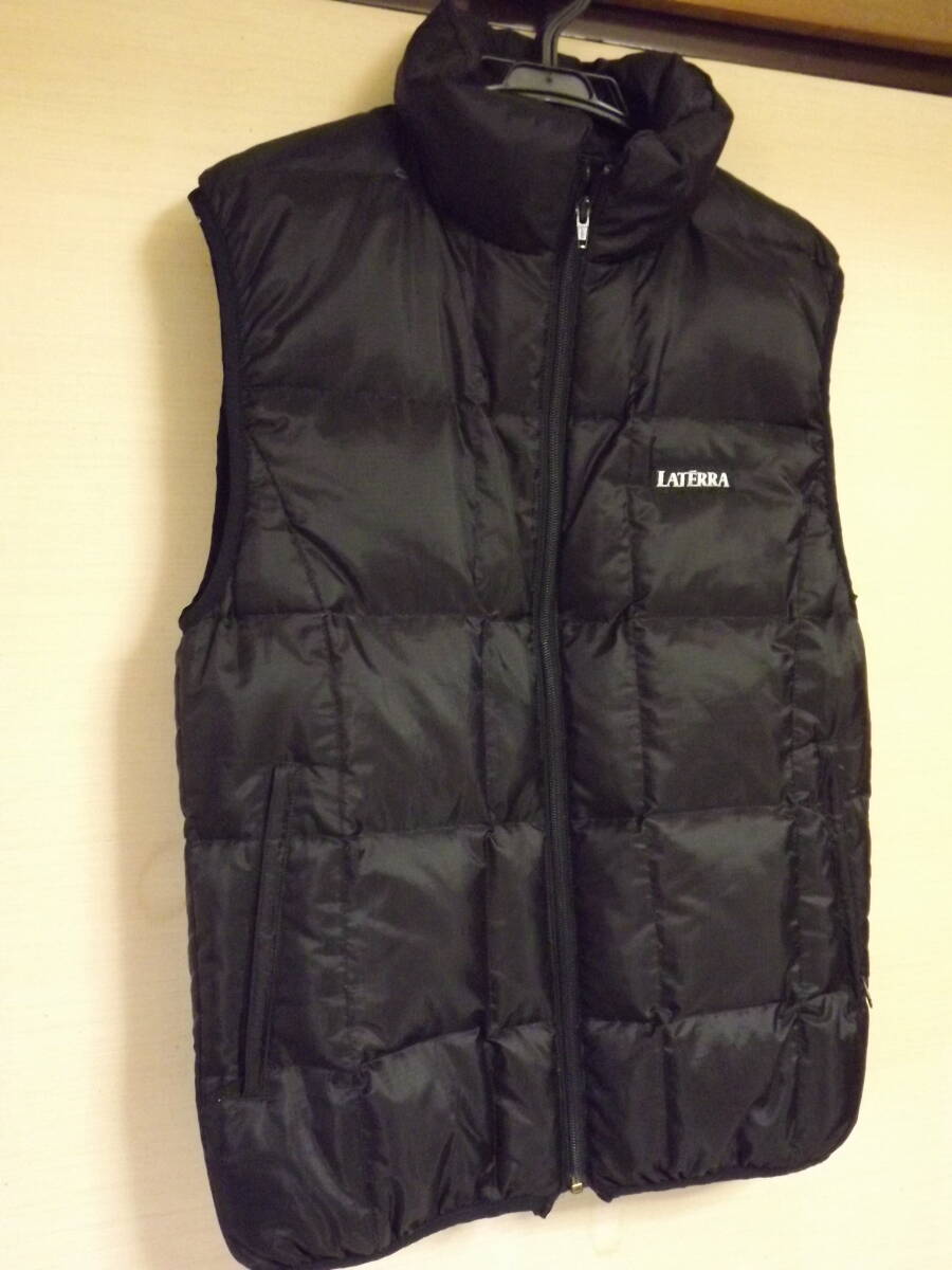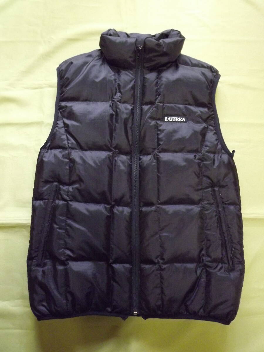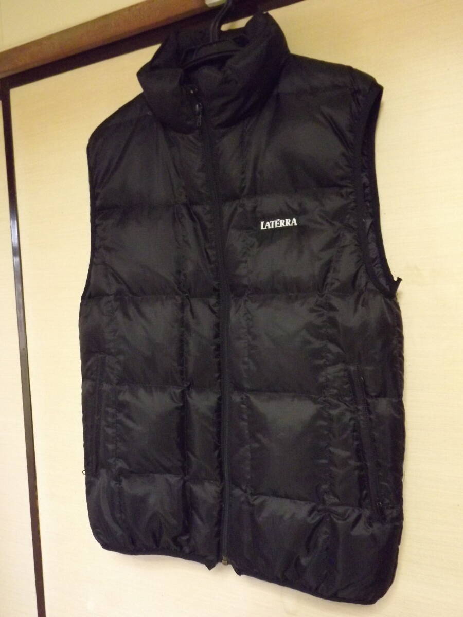 こちらはラテラの男性用ダウンベストになります。サイズはMENSのMサイズで、実寸サイズは身幅50センチ、肩幅43センチ、着丈65センチ位です。中古品ですが、まだまだご使用いただけます。発送は東京からゆうパックになります。出来るだけ小さく梱包して発送いたします。いかがでしょうか?