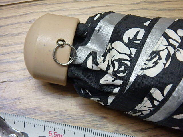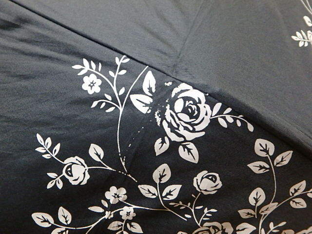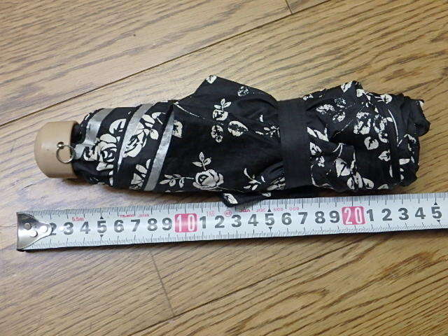 nk66-25-1029-9 折りたたみ傘 黒 バラ柄 兼用傘 雨傘 レディース 女性用 雨具 中古