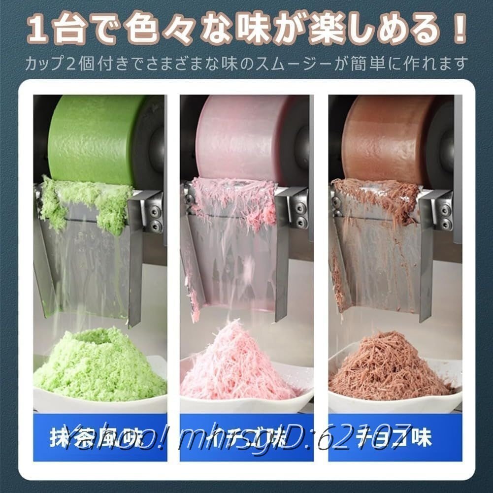 【3秒で氷が出る】氷を砕くかき氷機と違い、この製氷機の原料は液体なので、瞬時に凍らせて氷を削ってスムージーを作ります。事前に氷を用意する必要がなく、さまざまなフレーバーの液体を使用していつでもスムージーを作ることができます。