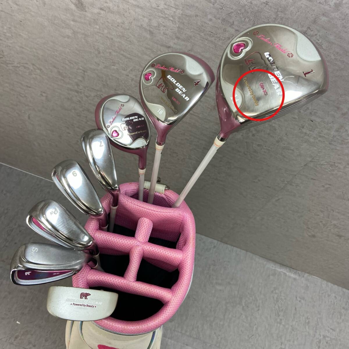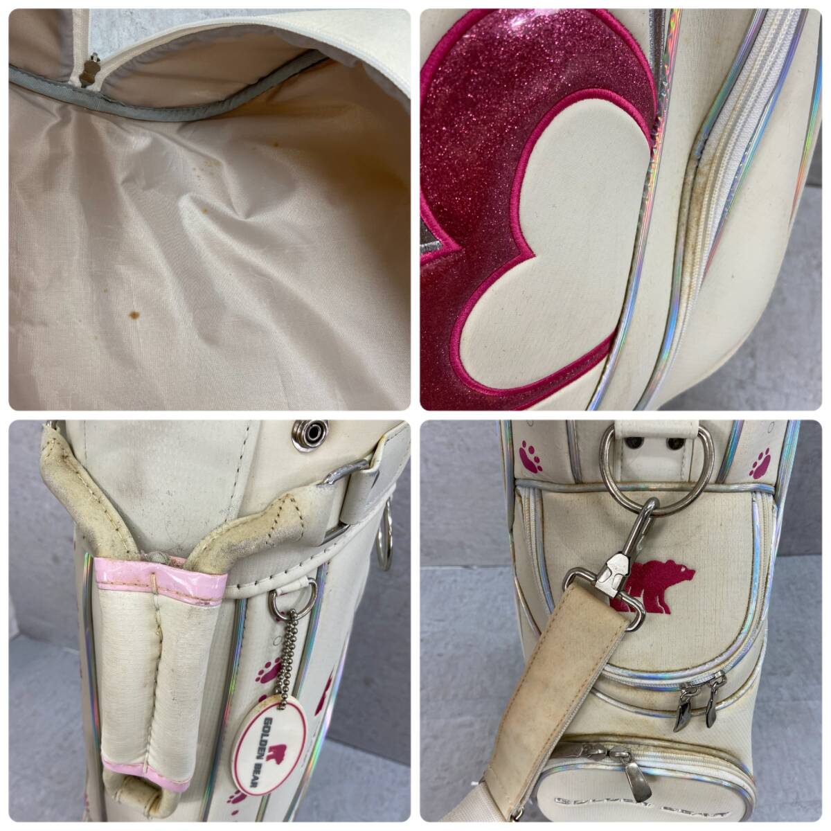 こちらの商品は中古品のため、ドライバーのヘッドにへこみやキャディバッグの生地の汚れや劣化などがある状態の商品になります。