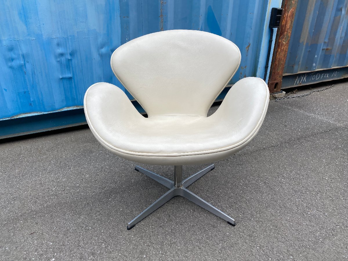 スワンチェア アルネヤコブセン 本革 ホワイト white swanchair chair パーソナルチェア デザイナーズ家具 ジャンク 中古品