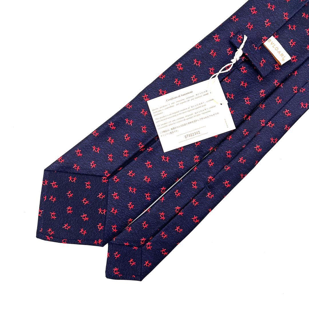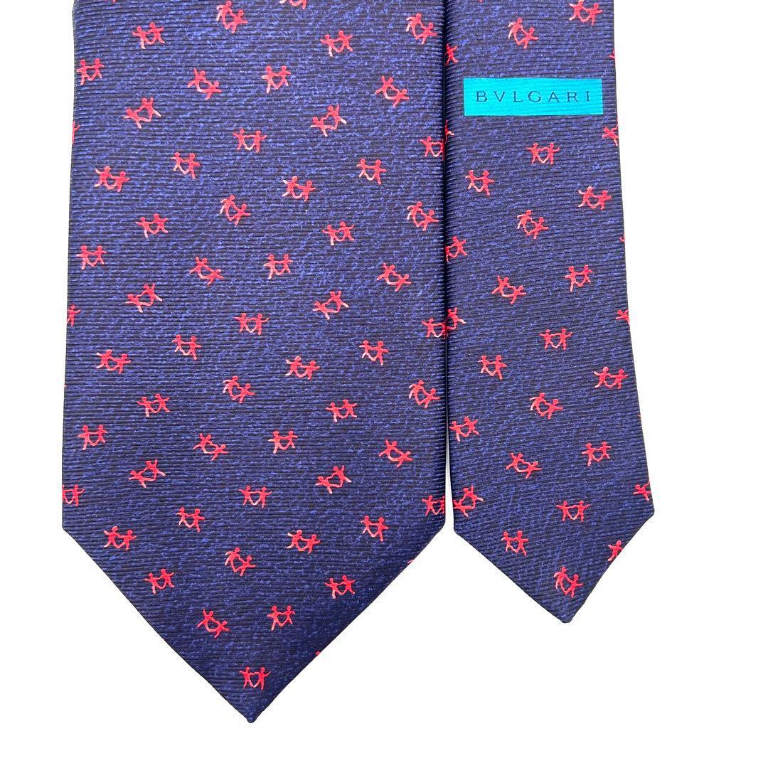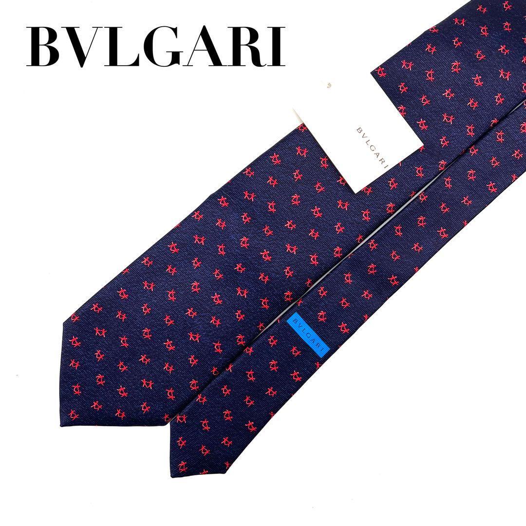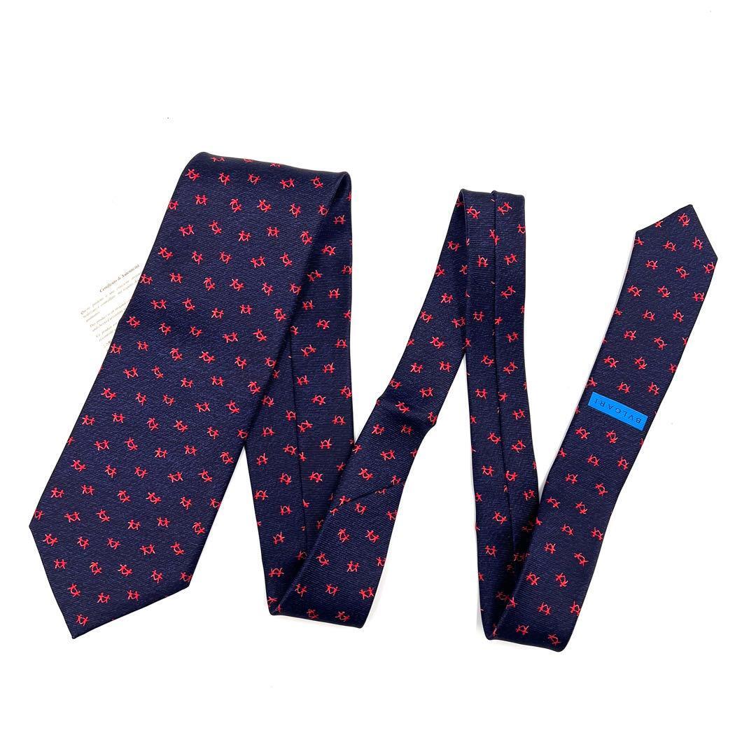 【新品】BVLGARI ブルガリ メンズ ネクタイ シルク100% ネイビー系