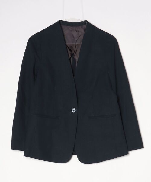 「SHIPS」 ノーカラージャケット 36 ネイビー レディース
