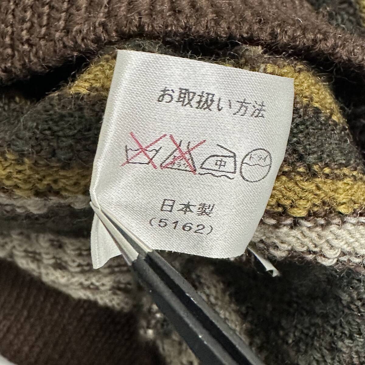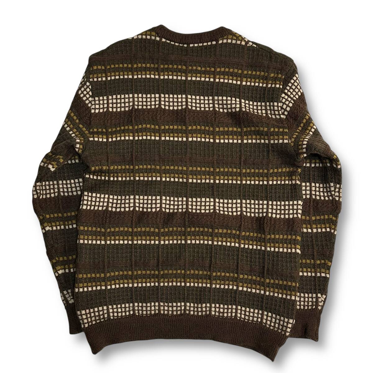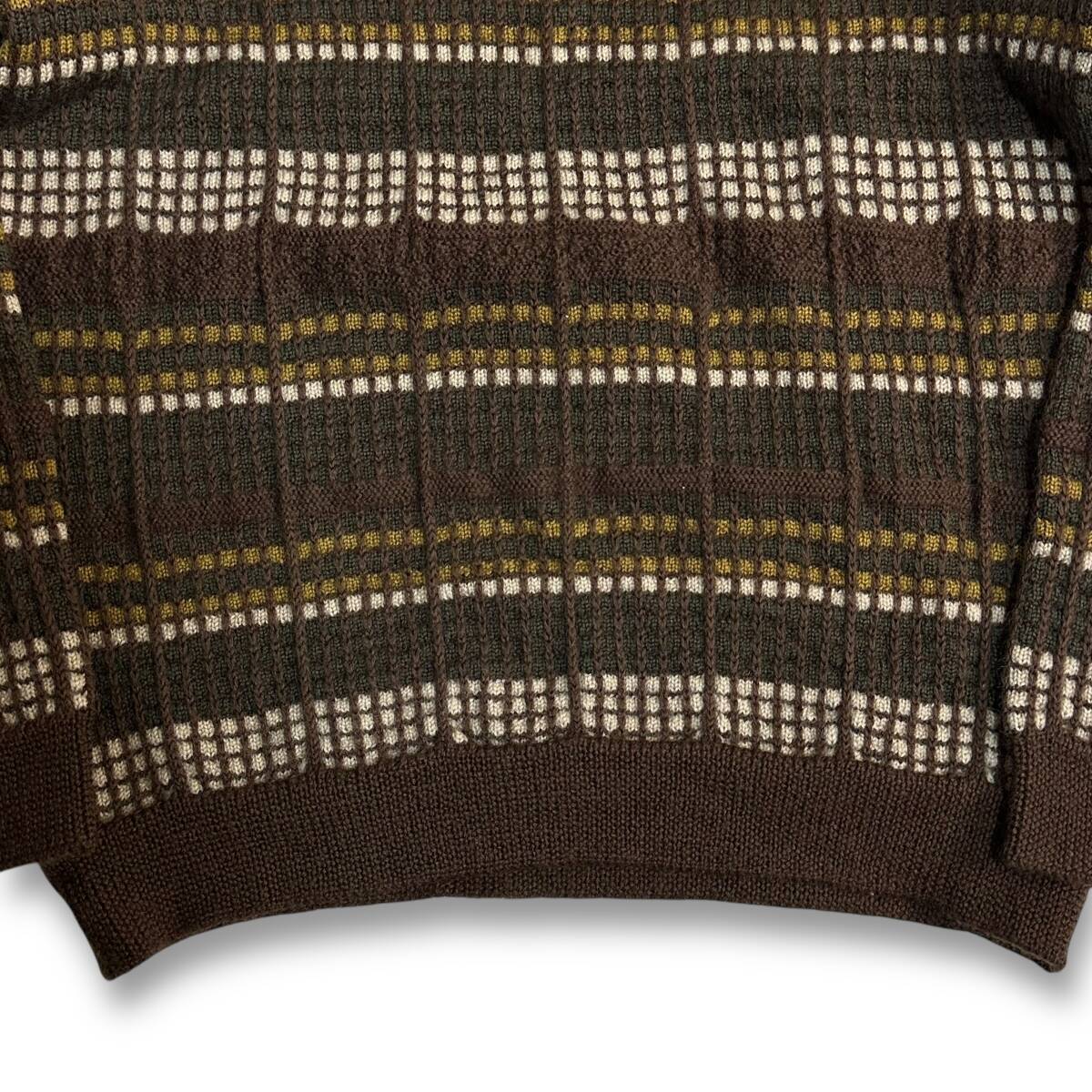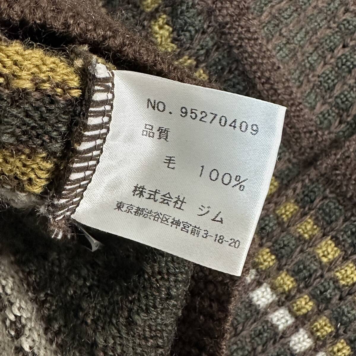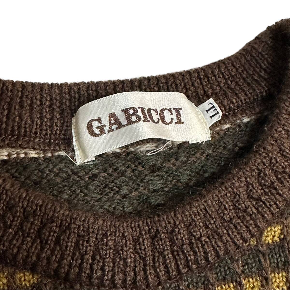 秀逸【GABICCI】00s パネルデザイン調 チェック ウール100% クルーネックニット カジュアル ブラウン 日本製 GIM