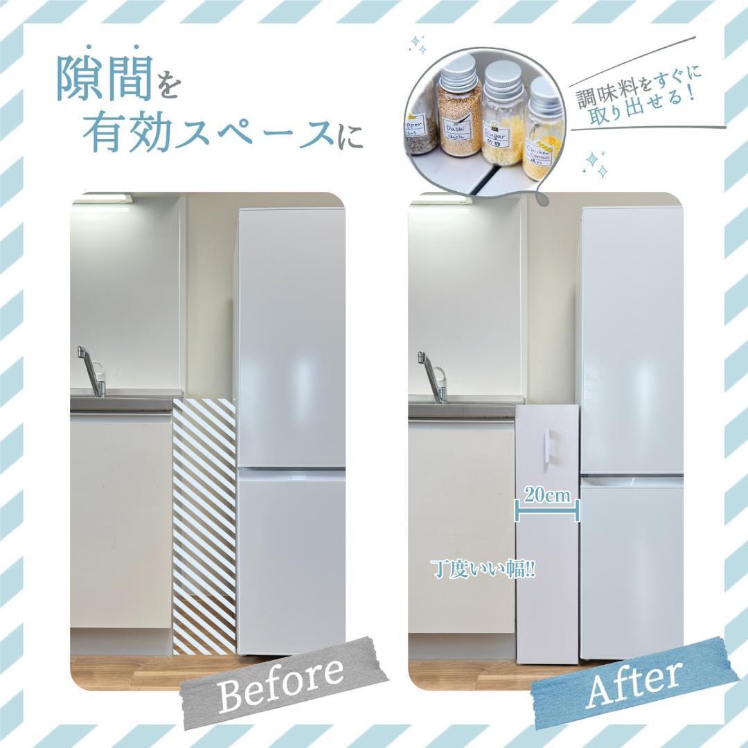 幅20cmのコンパクト設計ながら、3段収納+天板スペースで抜群の収納力。