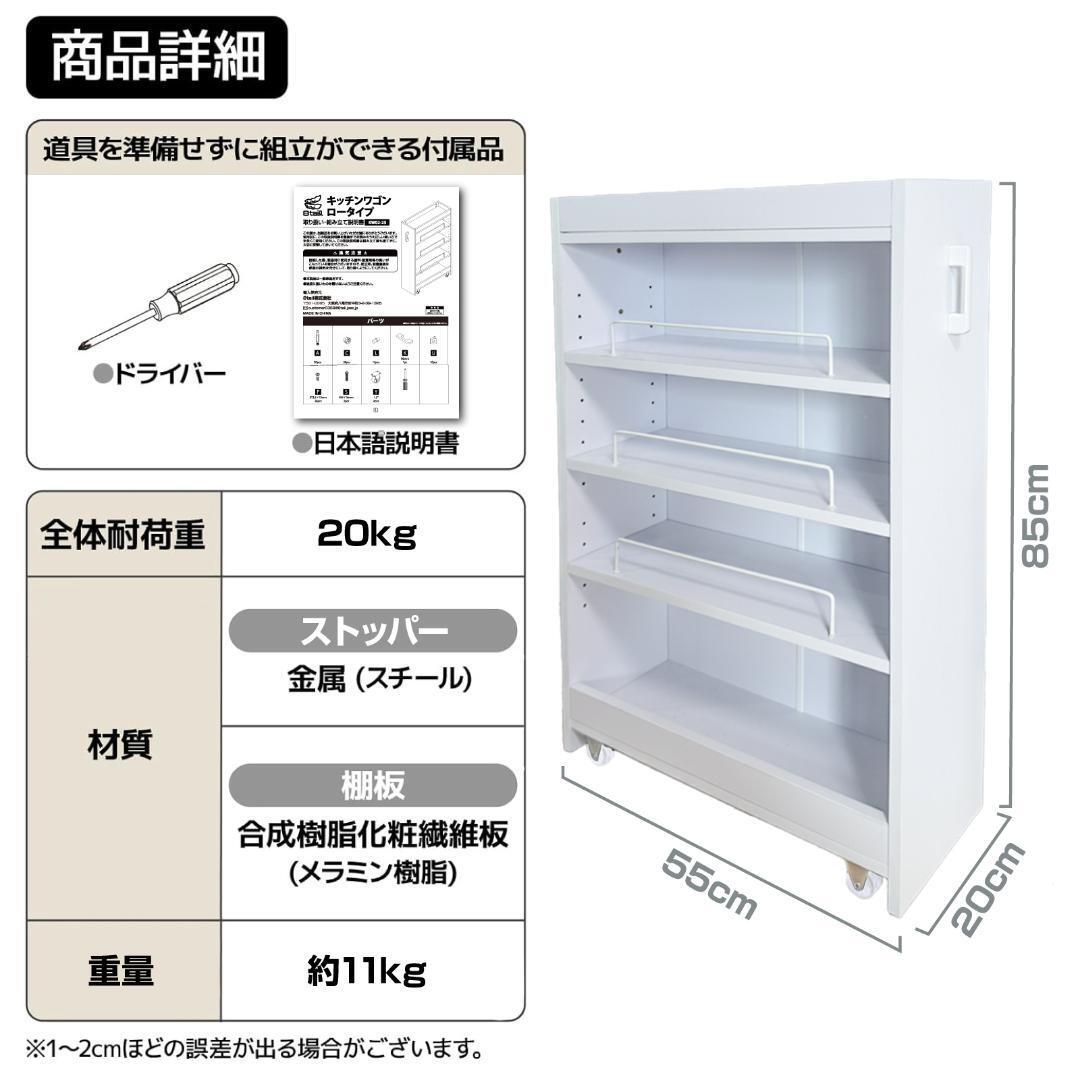 キッチンワゴン ロータイプ 幅20 奥行60 ホワイト #2952