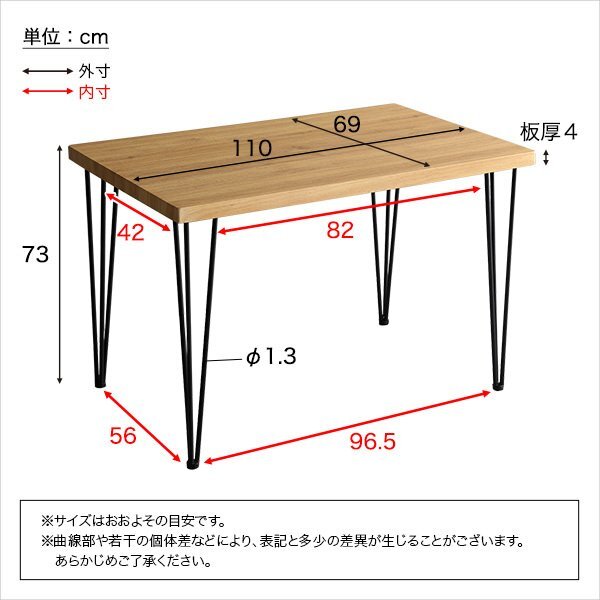| <今回の出品> テーブル単品 110cm幅 | ||