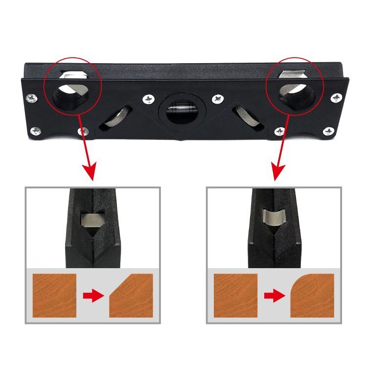 ◆面取りカンナ 角面/丸面両用 木工用 ボードカンナ 面取り角45度 面幅調節可 軽量設計 使い方簡単 角材や板材のエッジ処理に 角部削り専用カンナ 面取り鉋 水準器付 WWCP45